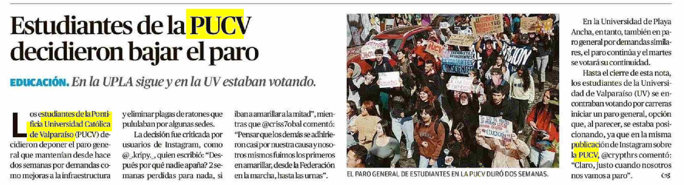 Título: Estudiantes de la PUCV decidieron bajar el paro