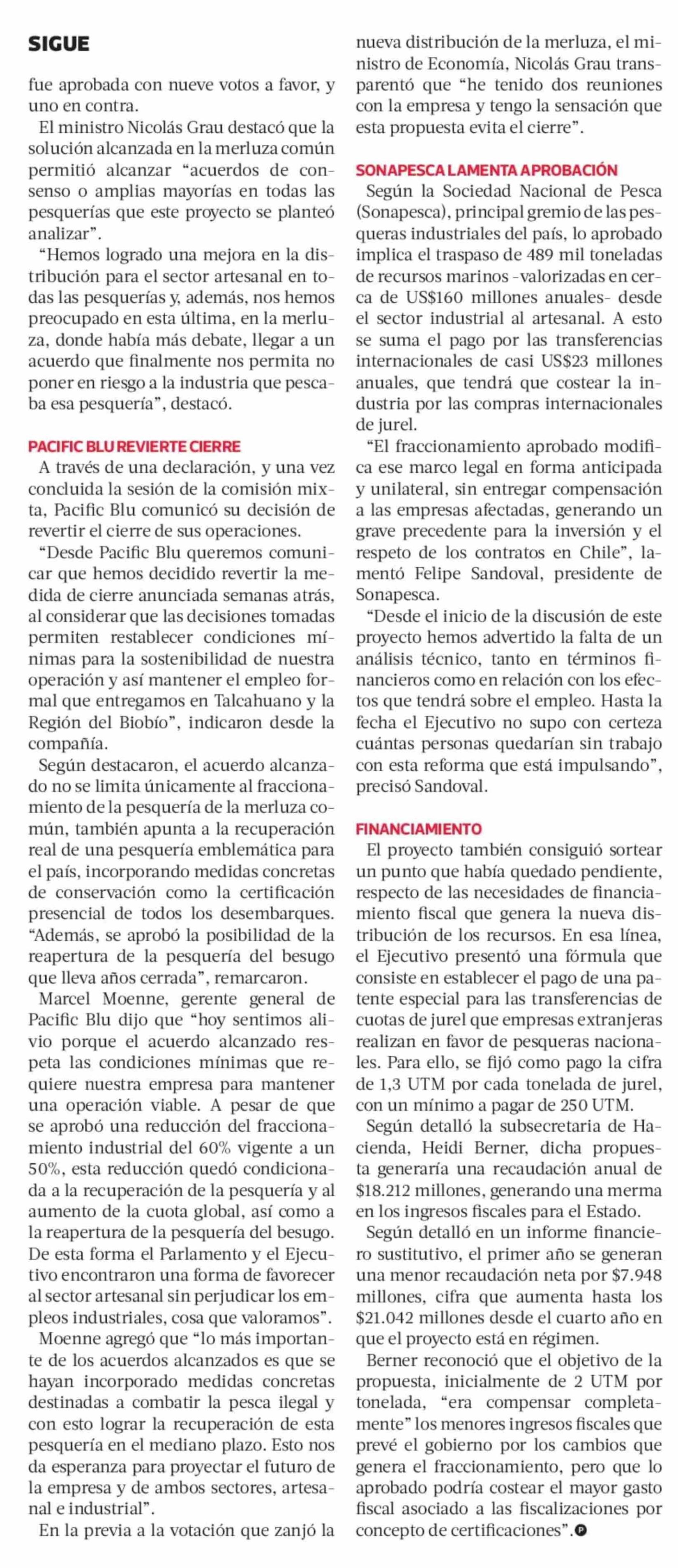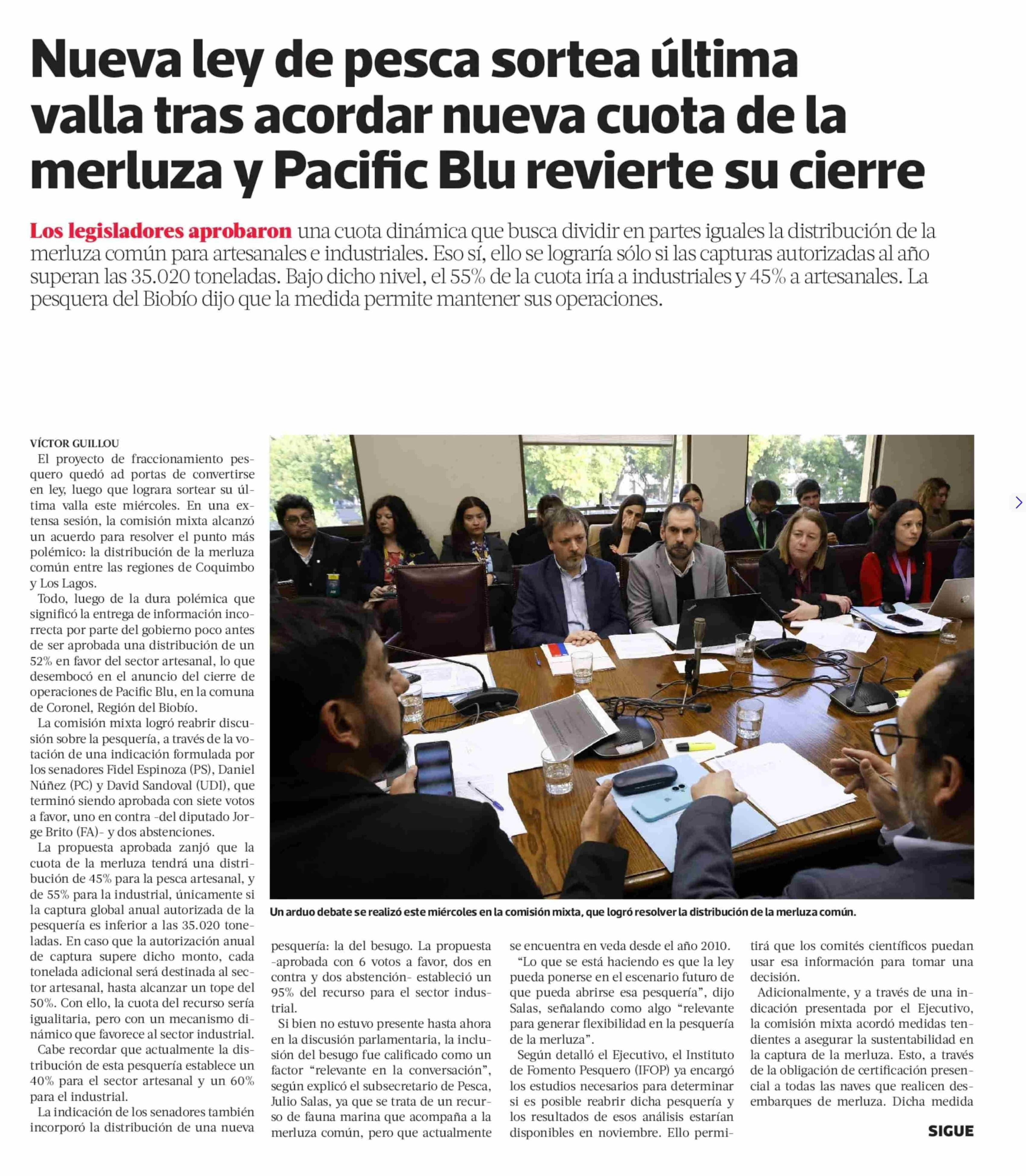 | Título: | Nueva ley de pesca sortea última valla tras acordar nueva cuota de la merluza y Pacific Blu revierte su cierre |