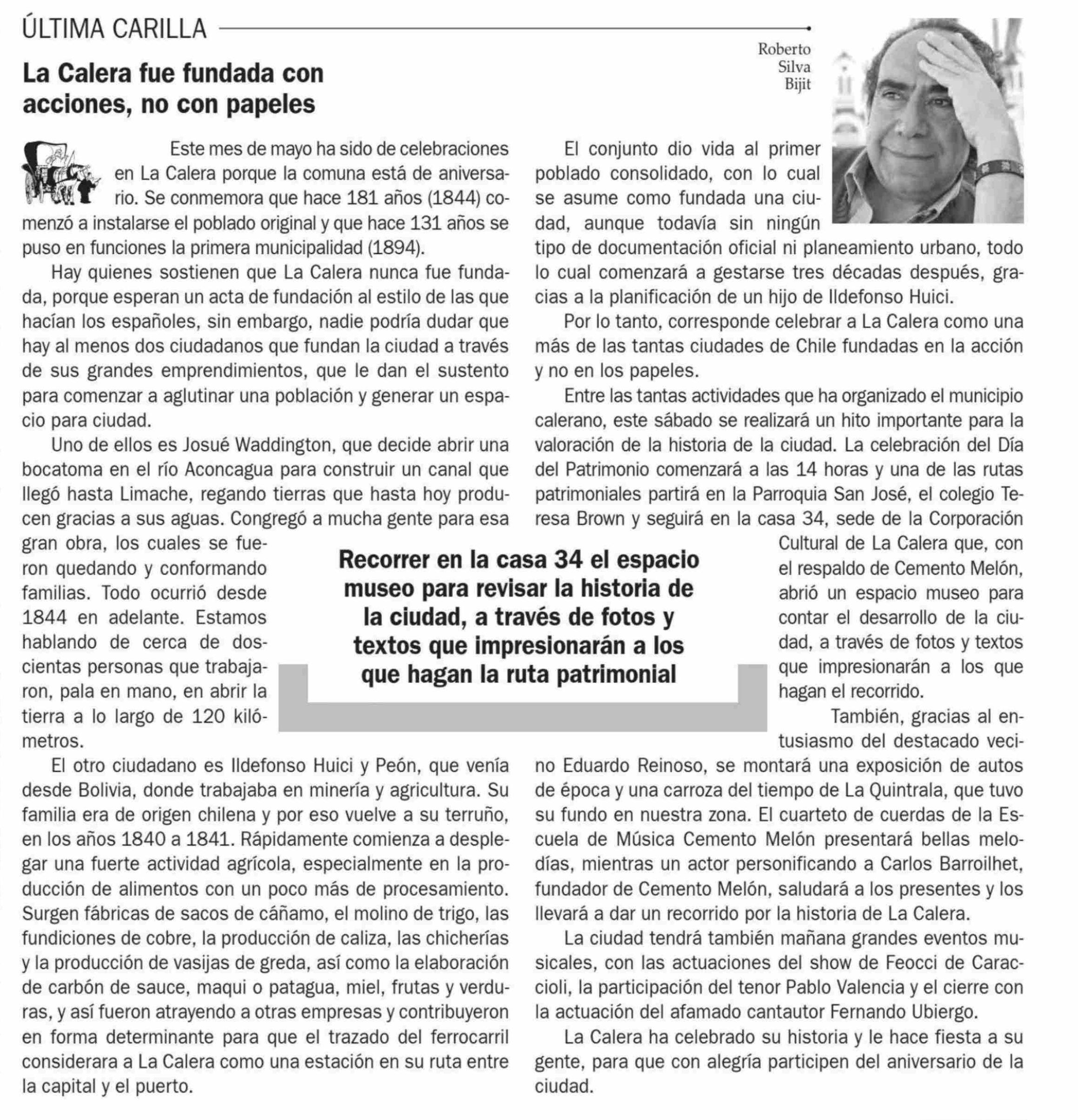 COLUMNAS DE OPINIÓN: La Calera fue fundada con acciones, no con papeles 23-05-2025 El Observador |