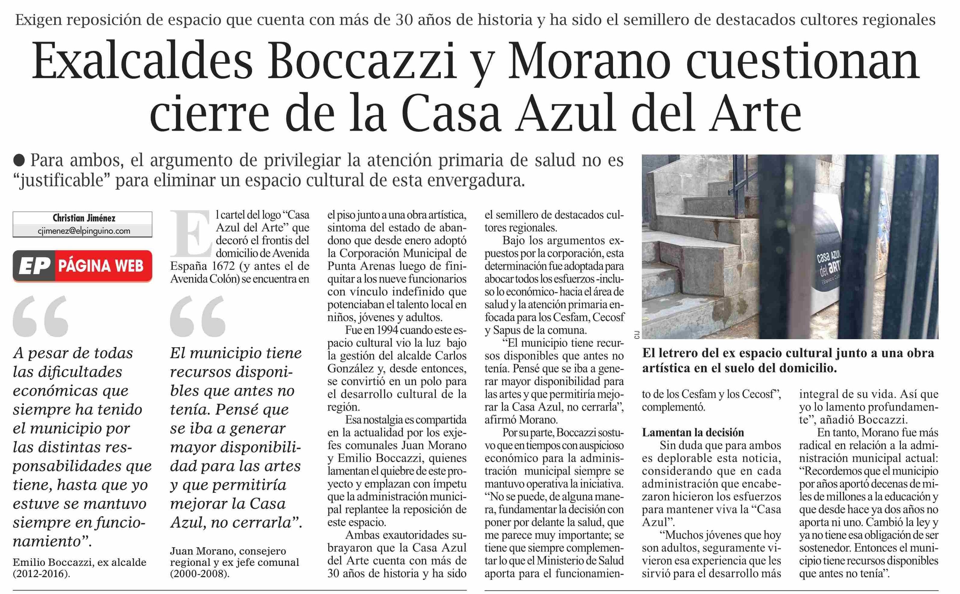 Exalcaldes Boccazzi y Morano cuestionan cierre de la Casa Azul del Arte 09-01-2026 El Pingüino |