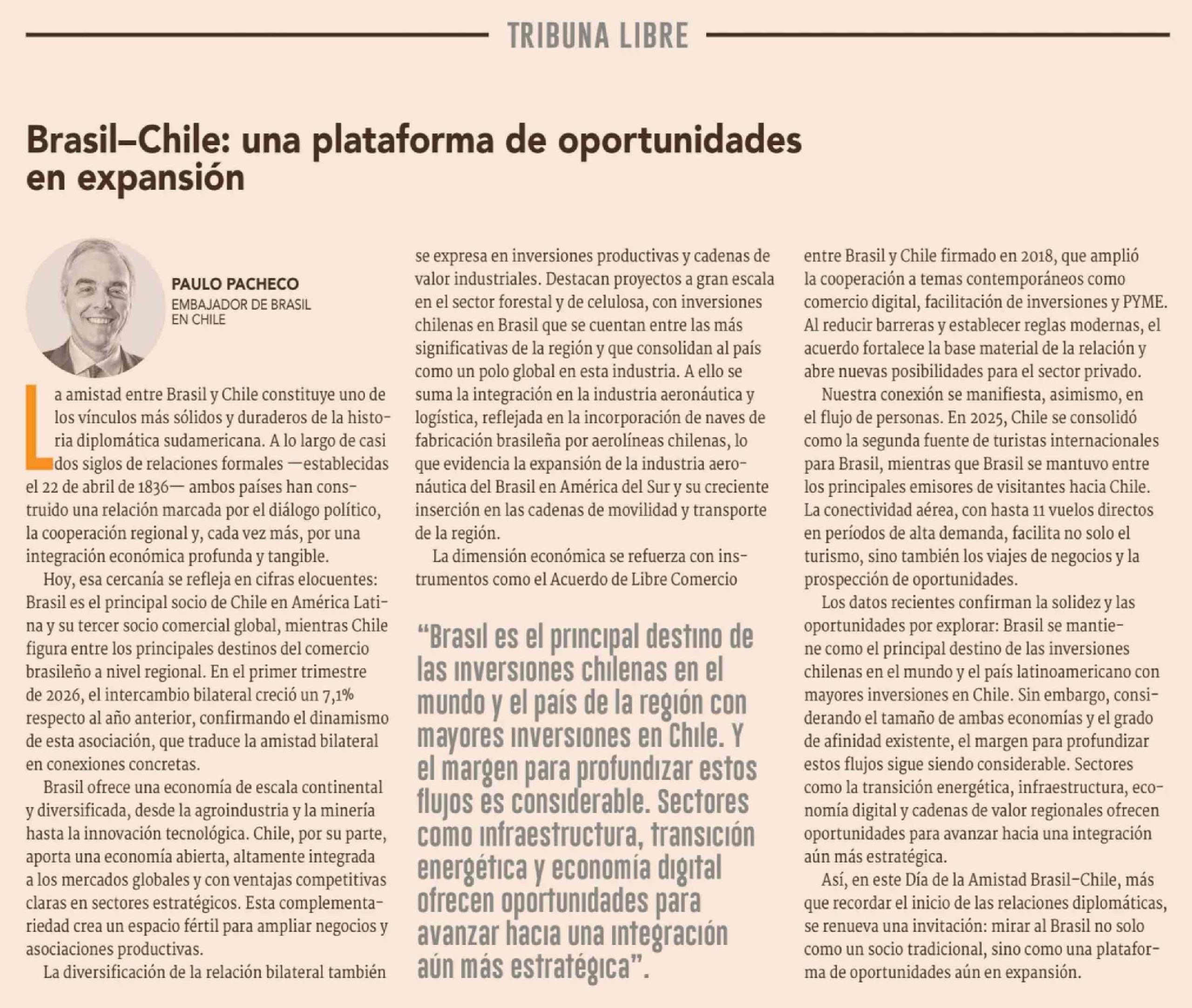 Columnas de Opinión: Brasil-Chile: una plataforma de oportunidades en expansión