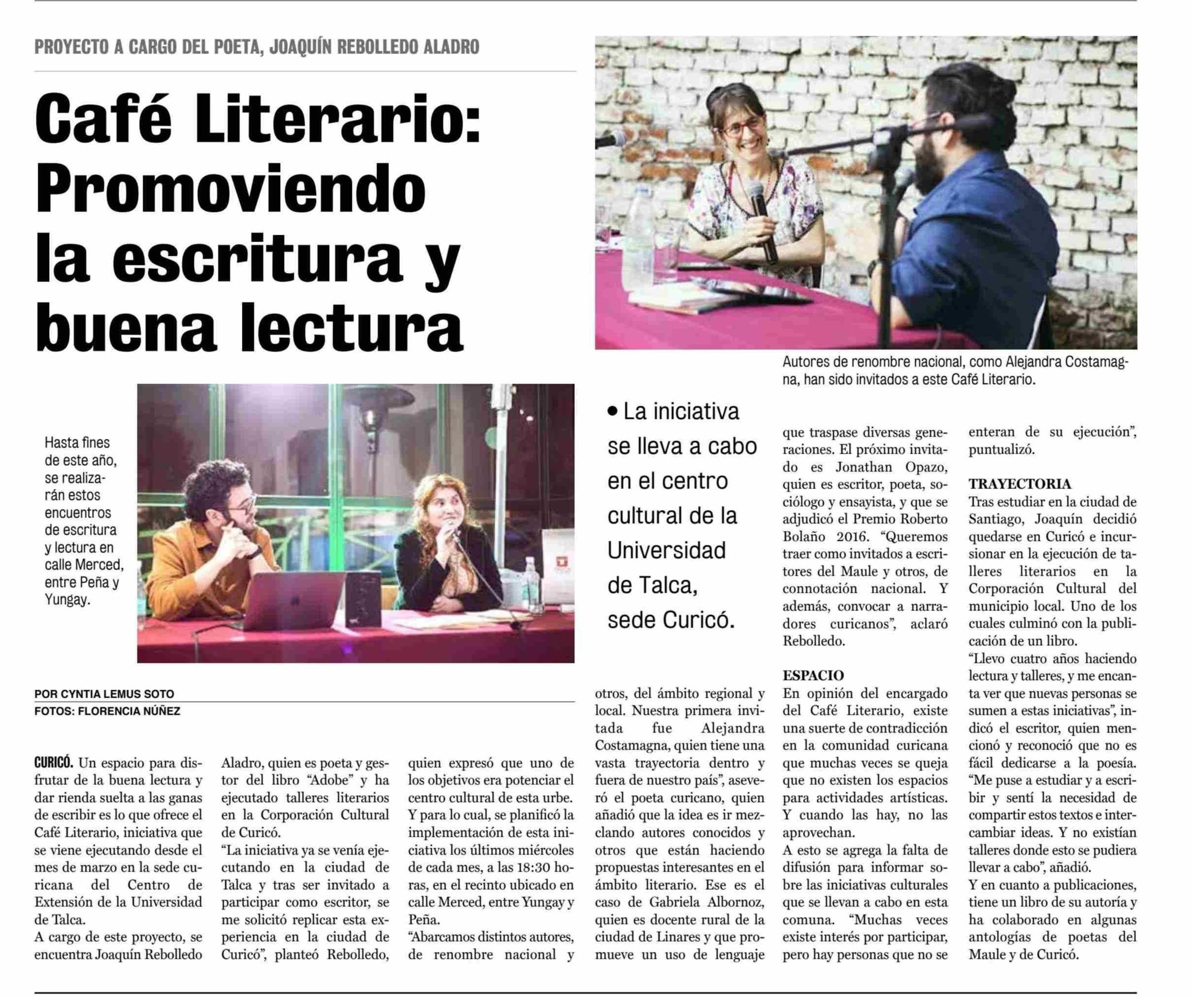 Café Literario: Promoviendo la escritura y buena lectura 10-06-2025 La Prensa de Curicó |