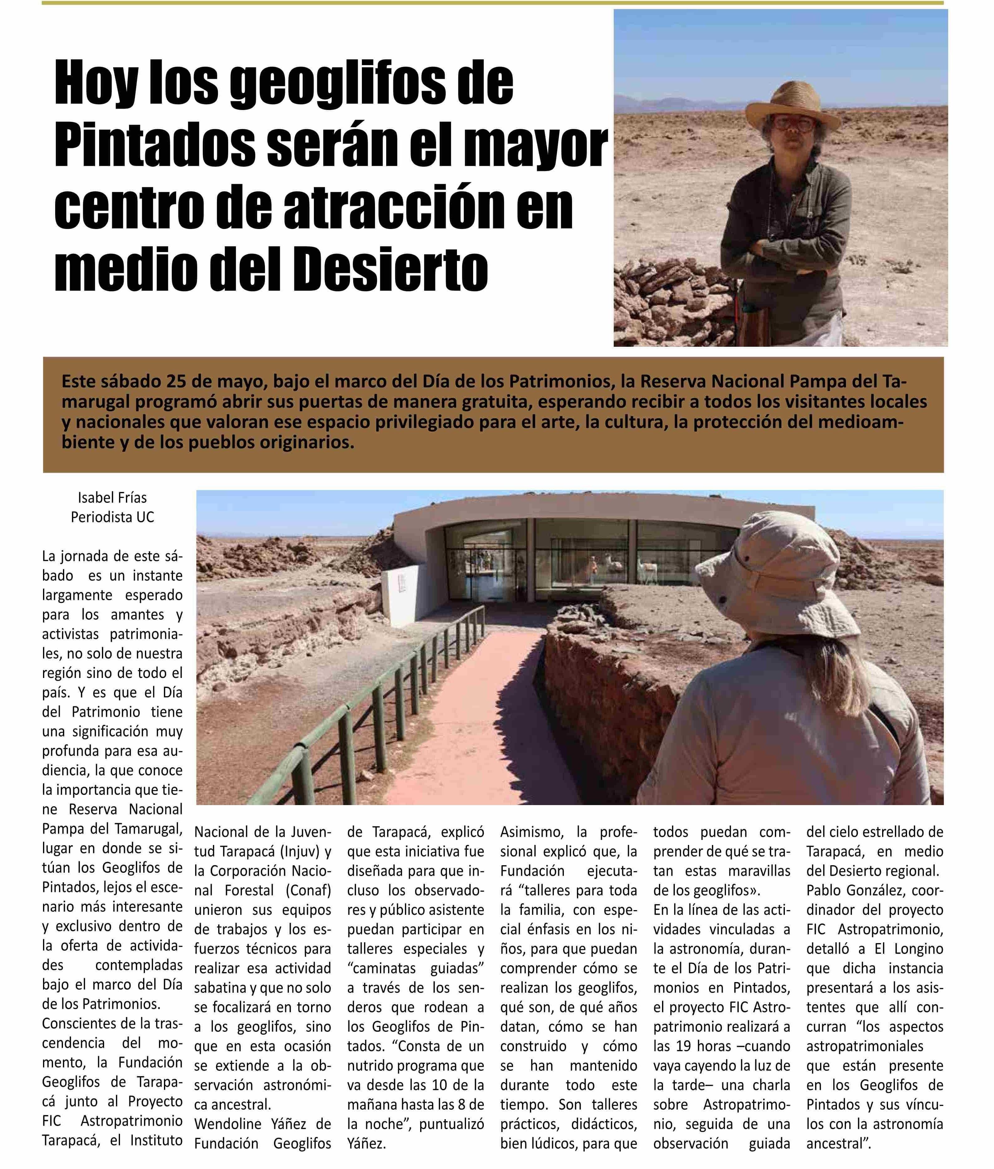 Hoy los geoglilos de Pintados serán el mayor centro de atracción en medio del Desierto 26-05-2024 El Longino- Del Tamarugal |