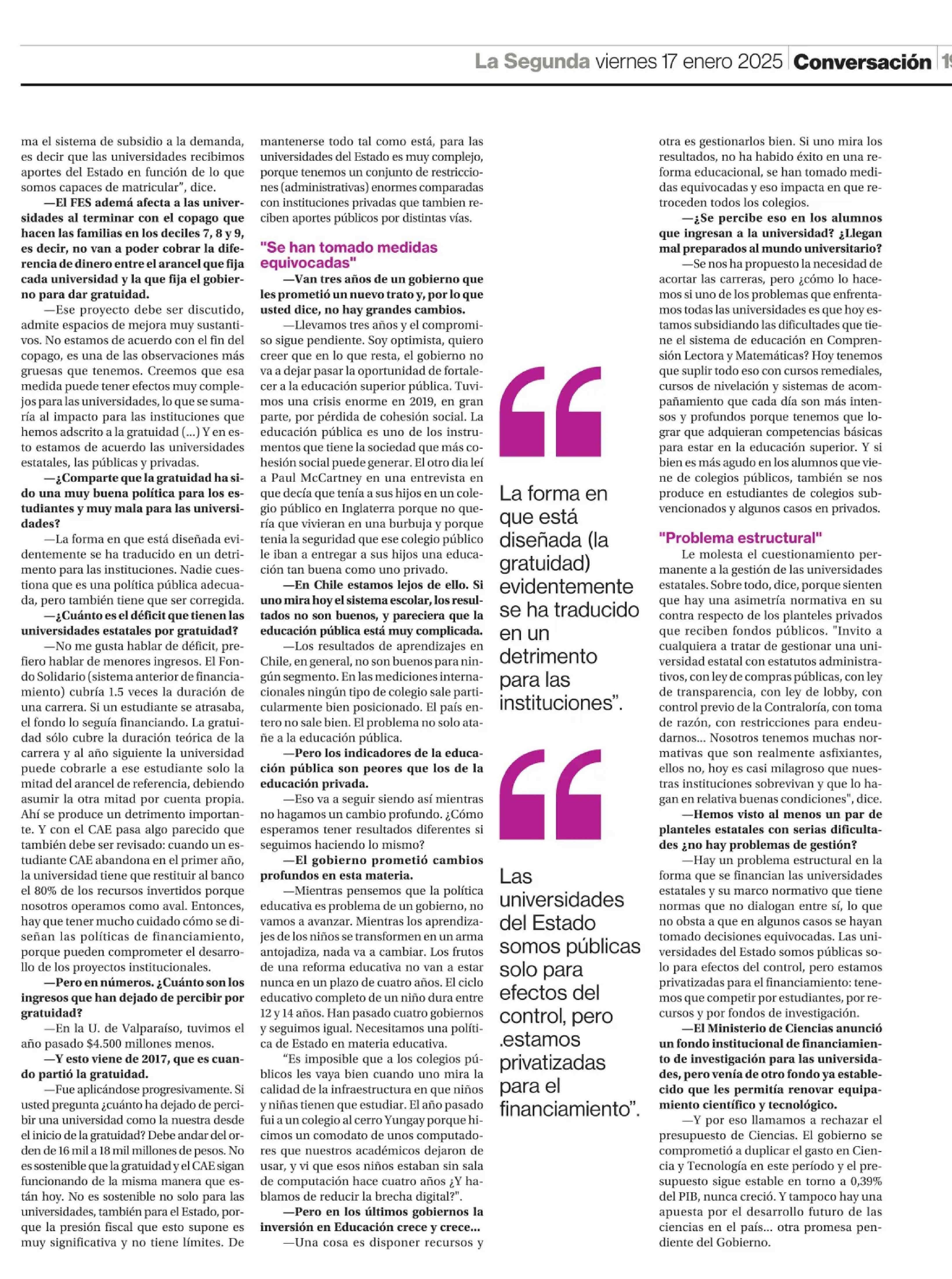 “La prioridad fue la condonación del CAE, no las universidades estatales” 17-01-2025 La Segunda |