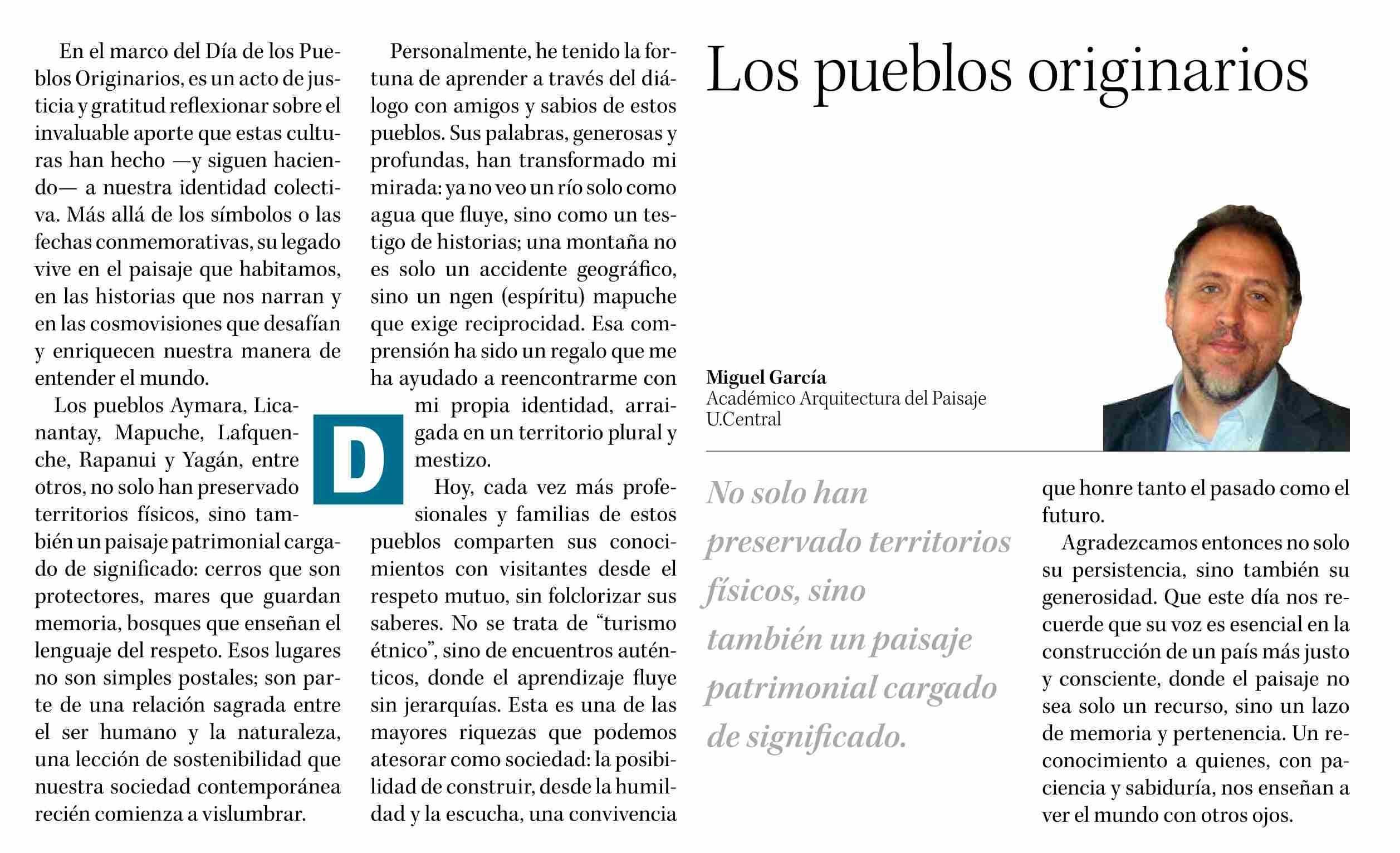 COLUMNAS DE OPINIÓN: Los pueblos originarios 24-06-2025 Diario Concepción |