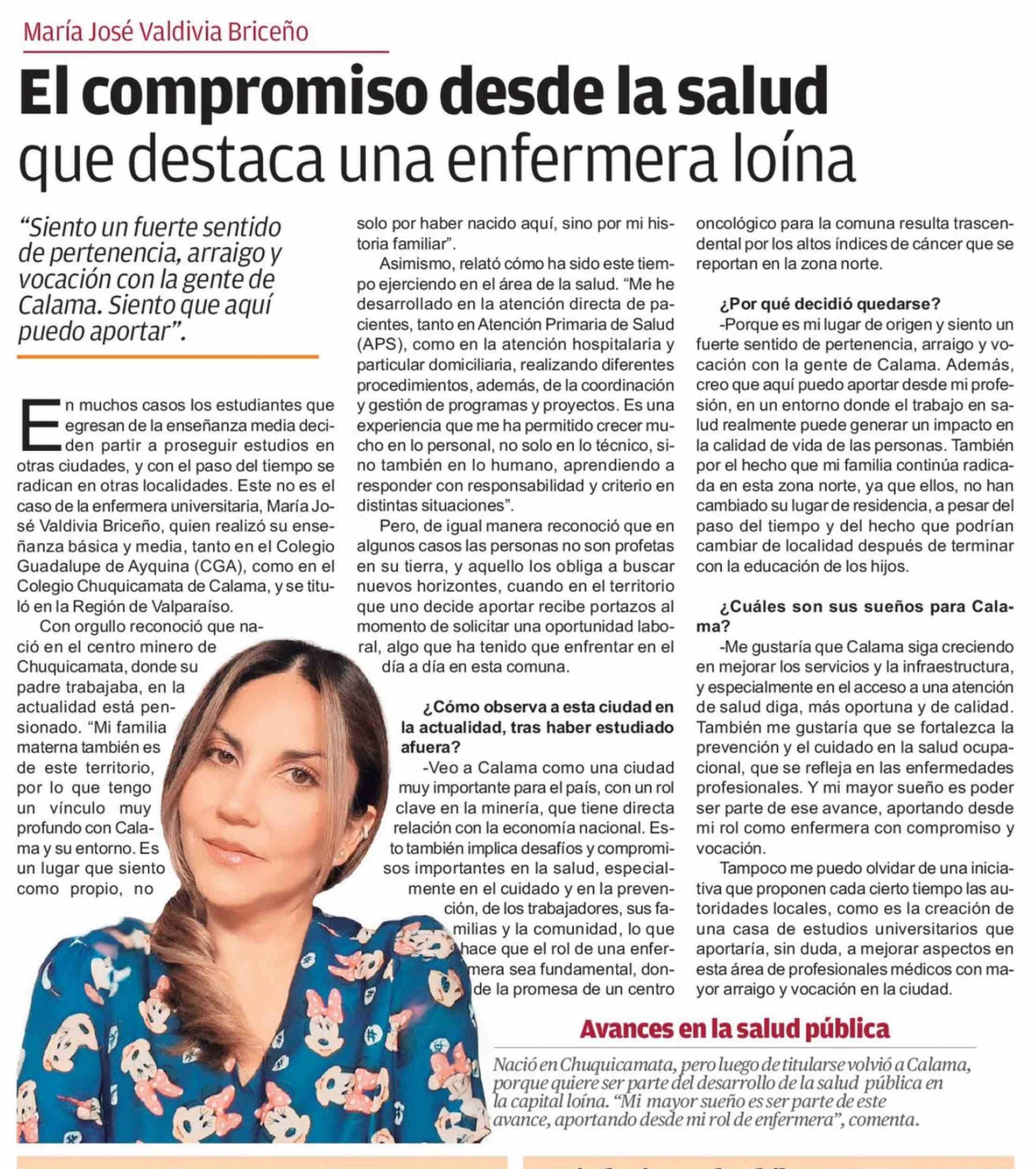 El compromiso desde la salud que destaca una enfermera loína 30-03-2026 El Mercurio de Calama |