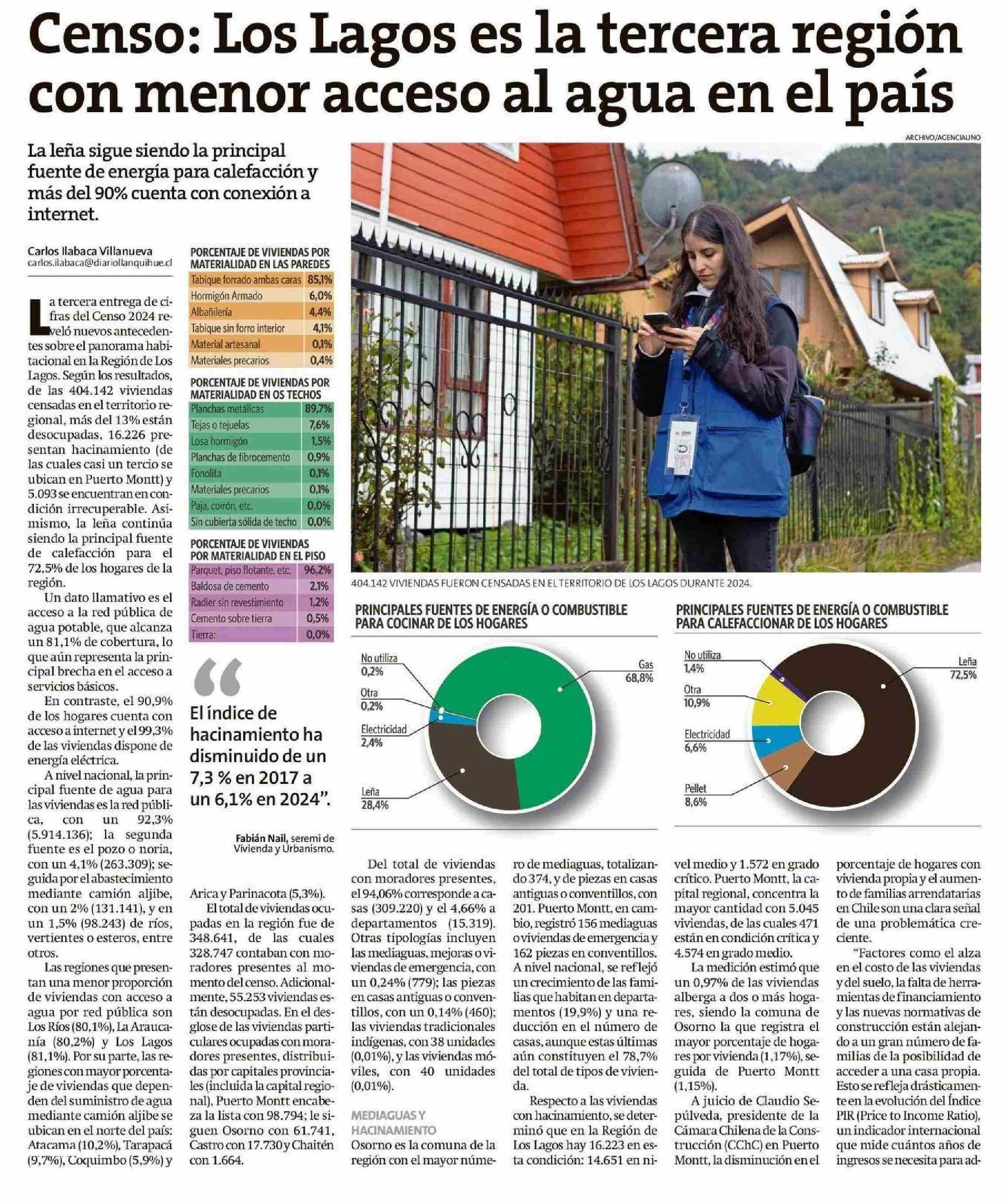 Censo: Los Lagos es la tercera región con menor acceso al agua en el país 03-06-2025 La Estrella de Chiloé |