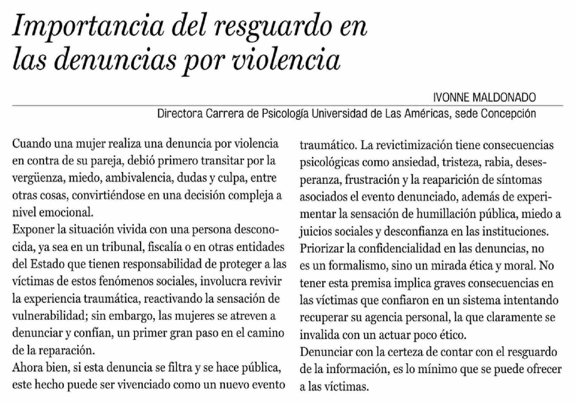 Título: Cartas: Importancia del resguardo en las denuncias por violencia