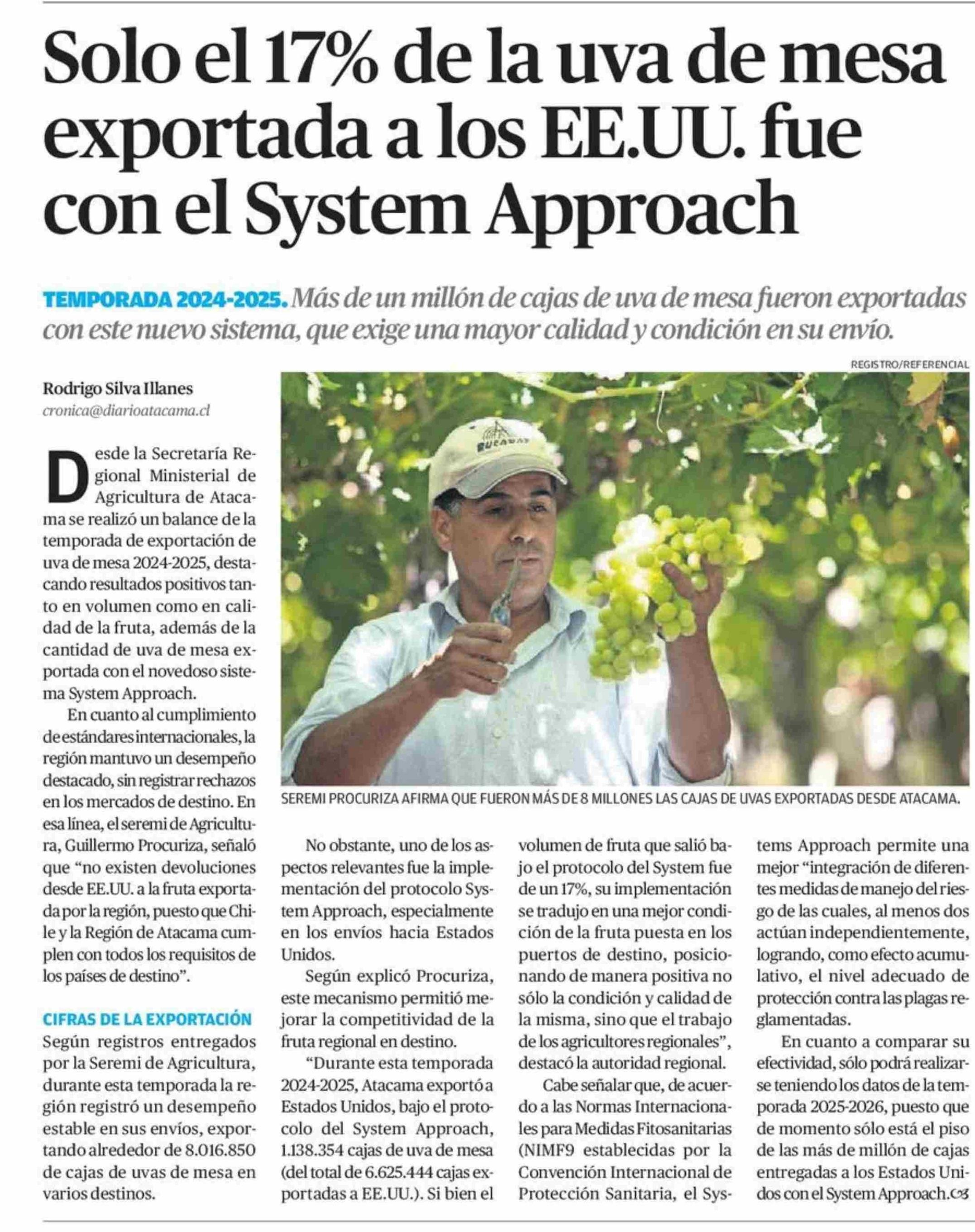 Solo el 17% de la uva de mesa exportada a los EE.UU. fue con el System Approach 24-04-2026 El Diario de Atacama |
