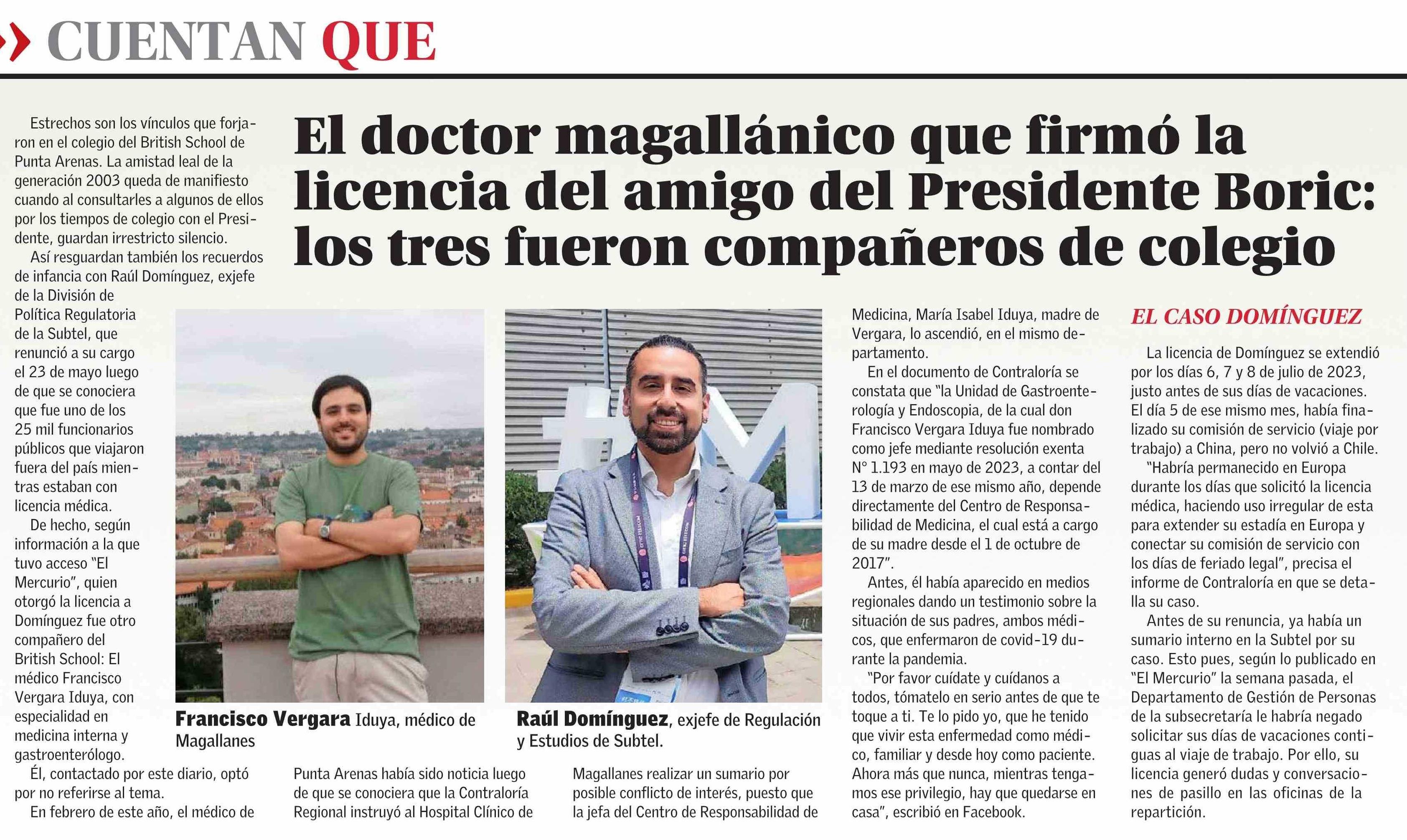 | Título: | Estrechos son los vínculos que forjaron en el colegio del British School de Punta Arenas. La amistad leal de la generación 2003 queda de manifiesto cuando al consultarles a algunos de ellos por los tiempos de colegio con el Presidente, guardan irrestricto silencio. Así resguardan también los recuerd |