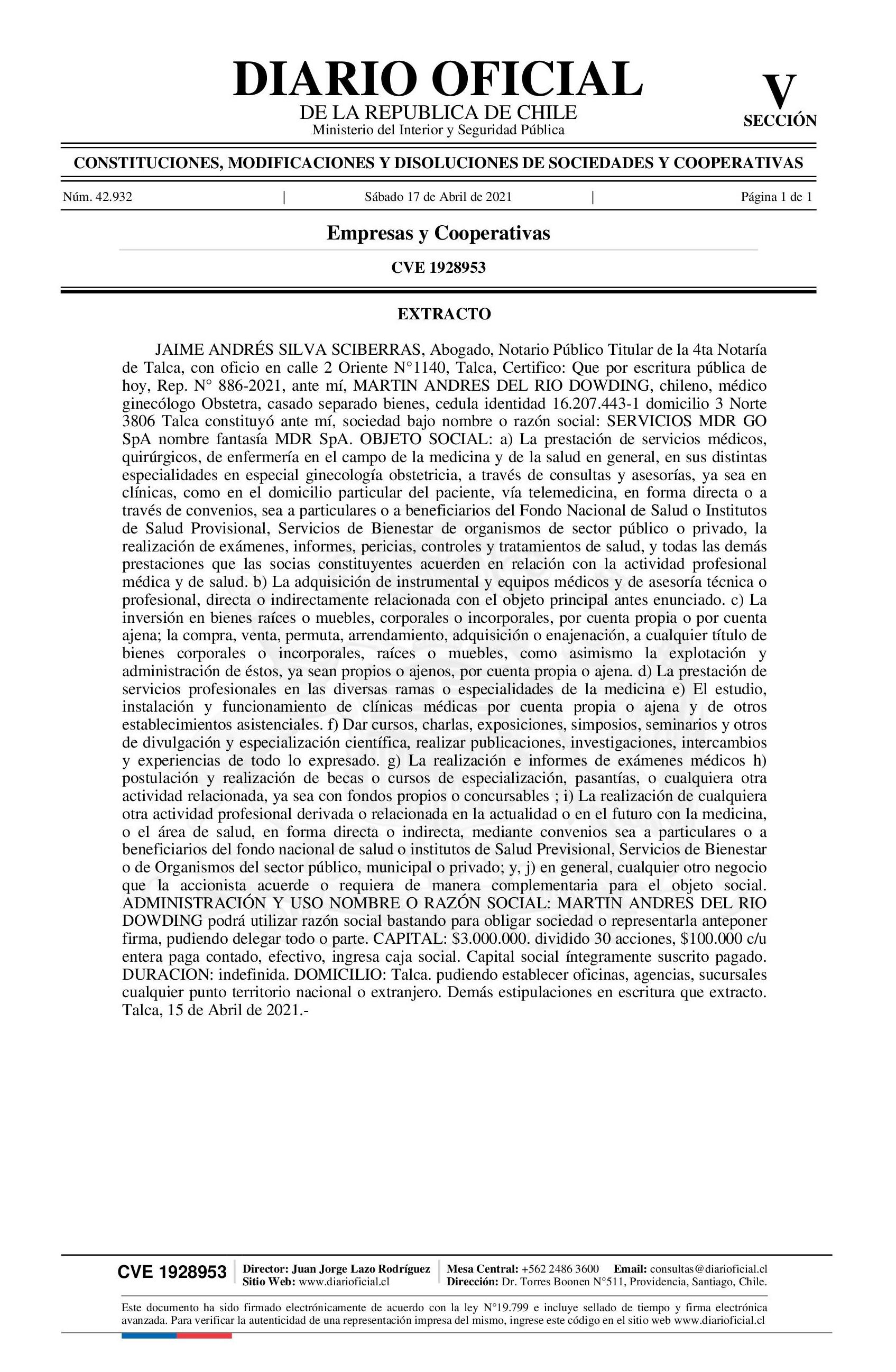 Extracto 17-04-2021 Diario Oficial Edición Electrónica |