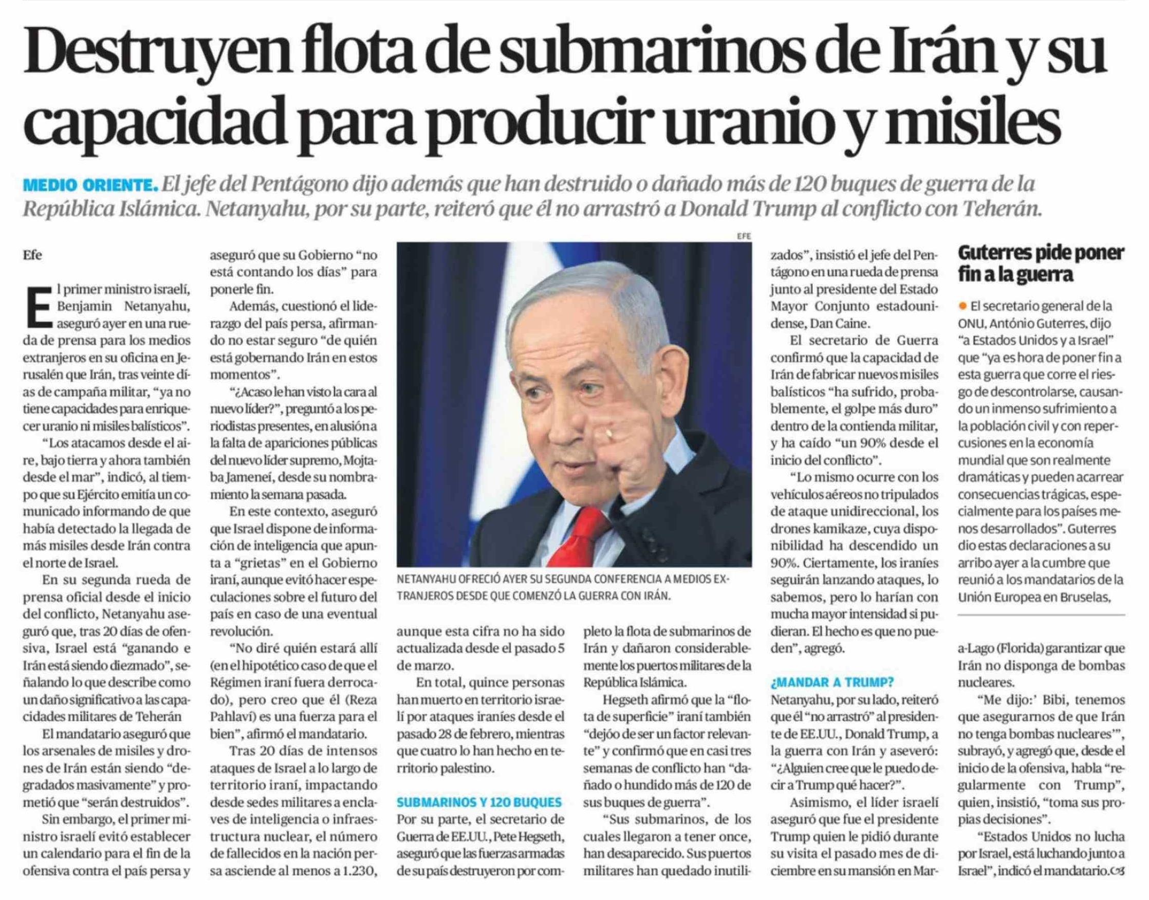 Destruyen flota de submarinos de Irán y su capacidad para producir uranio y misiles 20-03-2026 El Diario de Atacama |