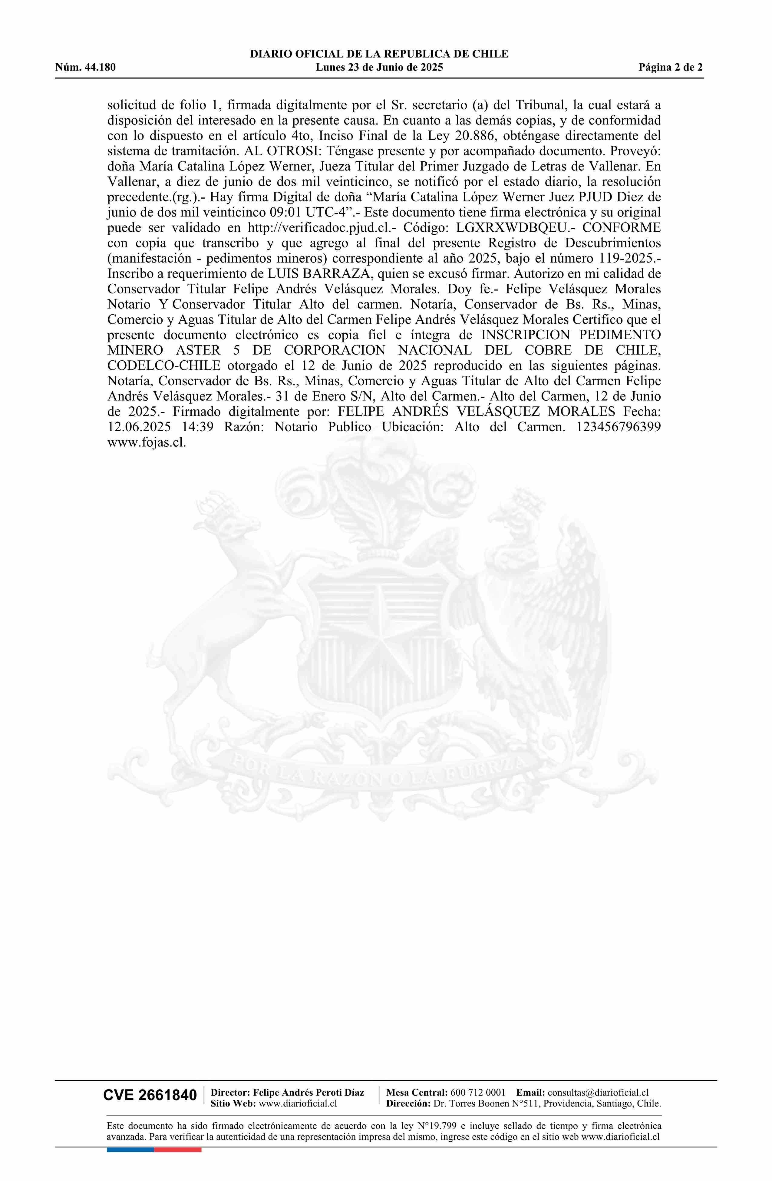 23-06-2025 DIARIO OFICIAL CHILE - BOLETÍN OFICIAL DE MINERÍA