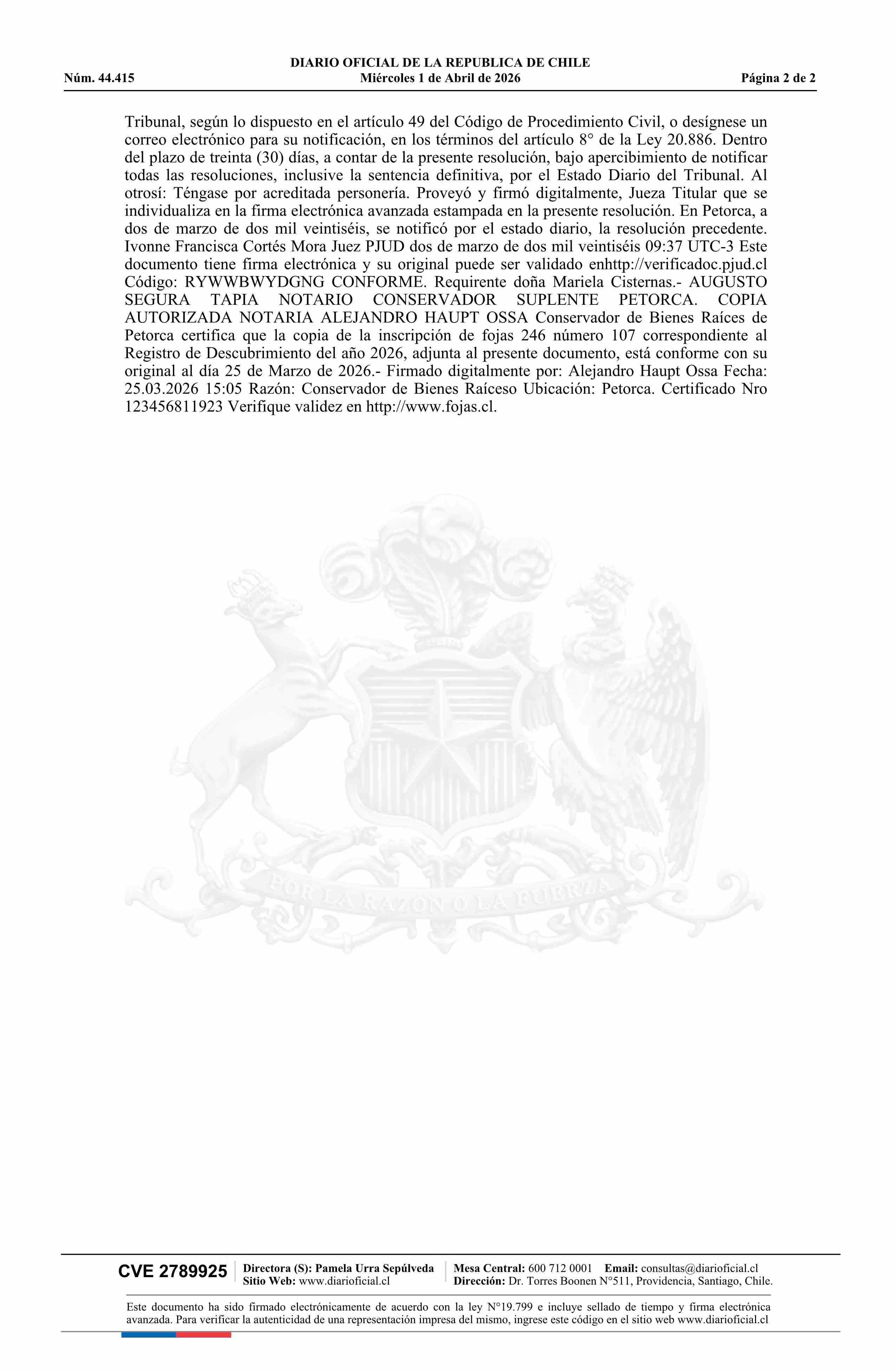 NUEVA 1 / Compañía Minera La Patagua 01-04-2026 DIARIO OFICIAL CHILE - BOLETÍN OFICIAL DE MINERÍA |