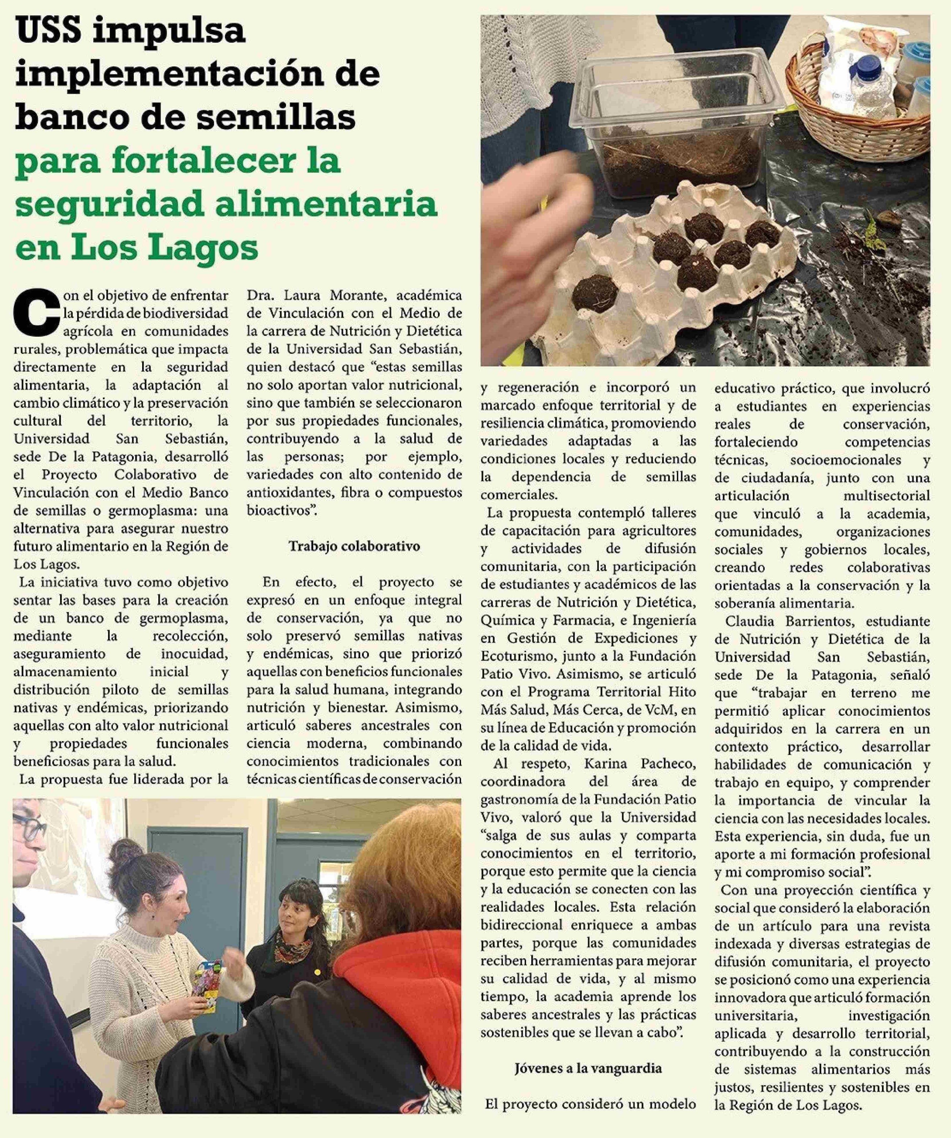 Título: USS impulsa implementación de banco de semillas para fortalecer la seguridad alimentaria en Los Lagos