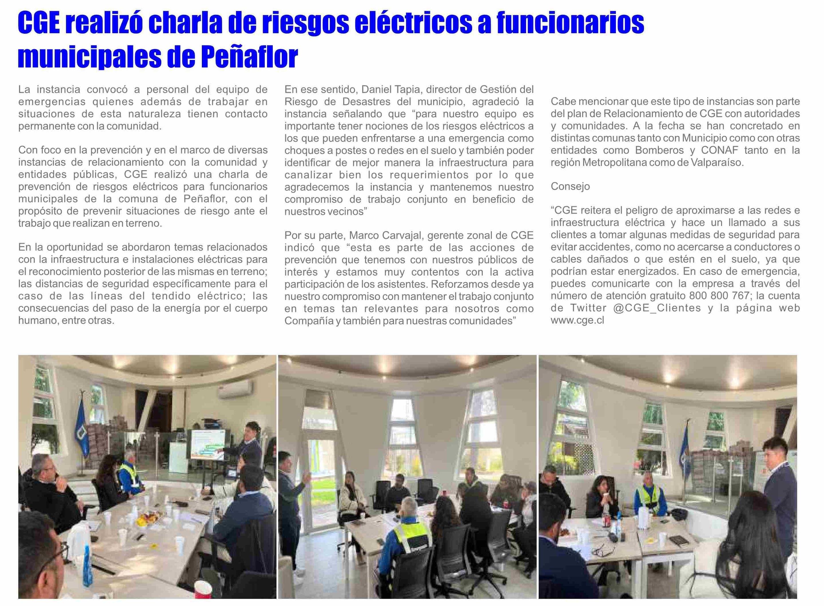 | Título: | CGE realizó charla de riesgos eléctricos a funcionarios municipales de Peñaflor |
