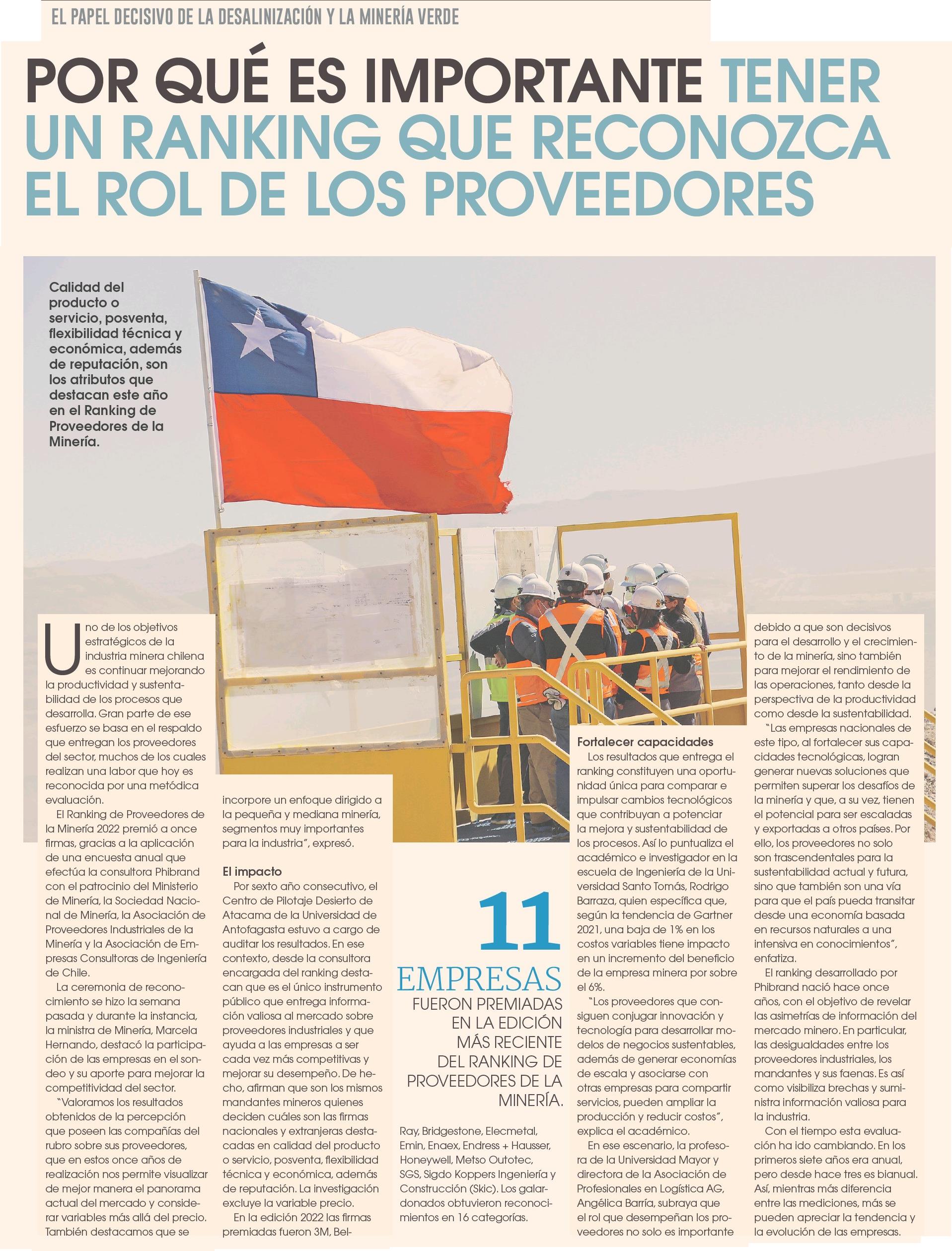 POR QUÉ ES IMPORTANTE TENER UN RANKING QUE RECONOZCA EL ROL DE LOS PROVEEDORES 29-09-2022 Diario Financiero |