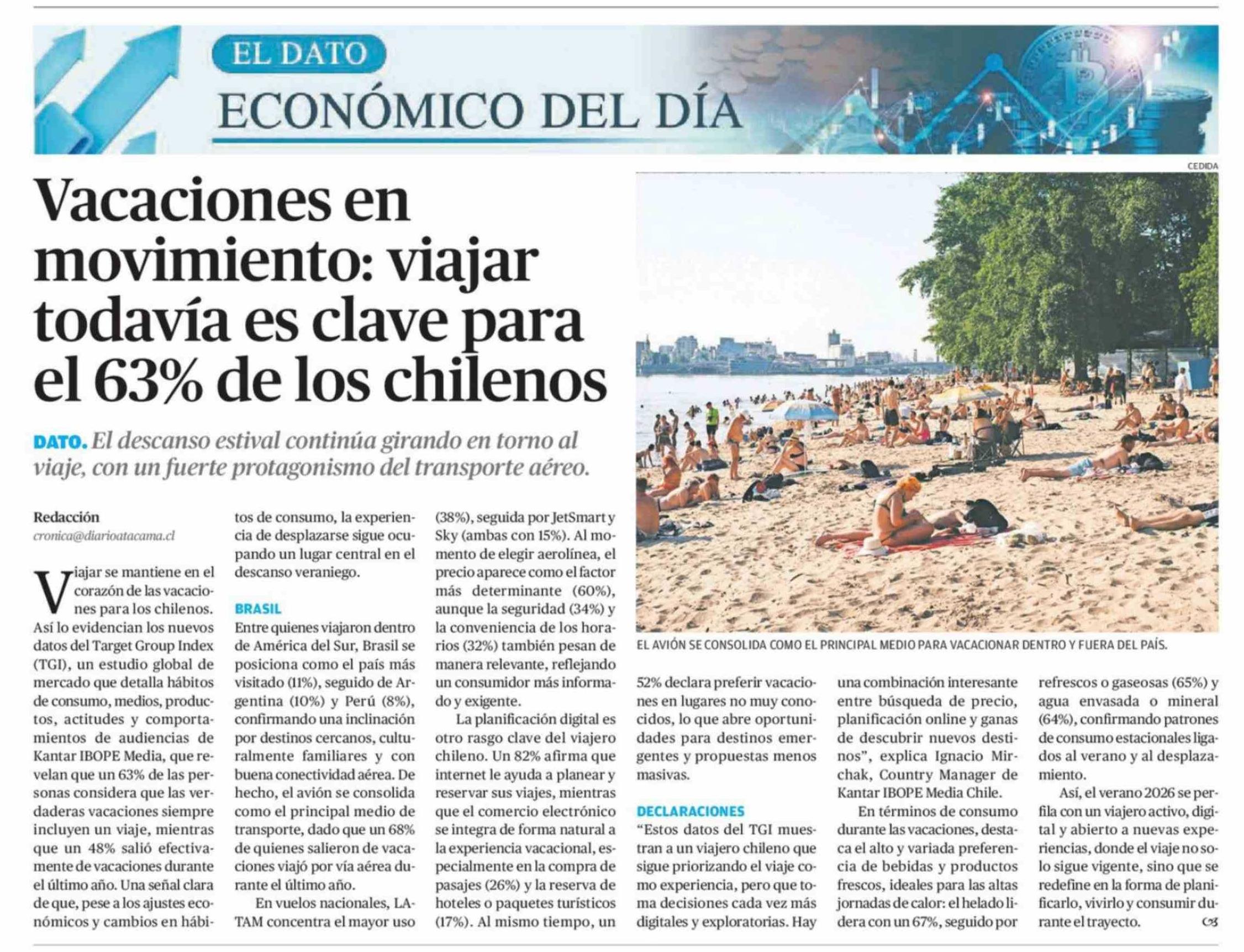 Vacaciones en movimiento: viajar todavía es clave para el 63% de los chilenos 17-02-2026 El Diario de Atacama |