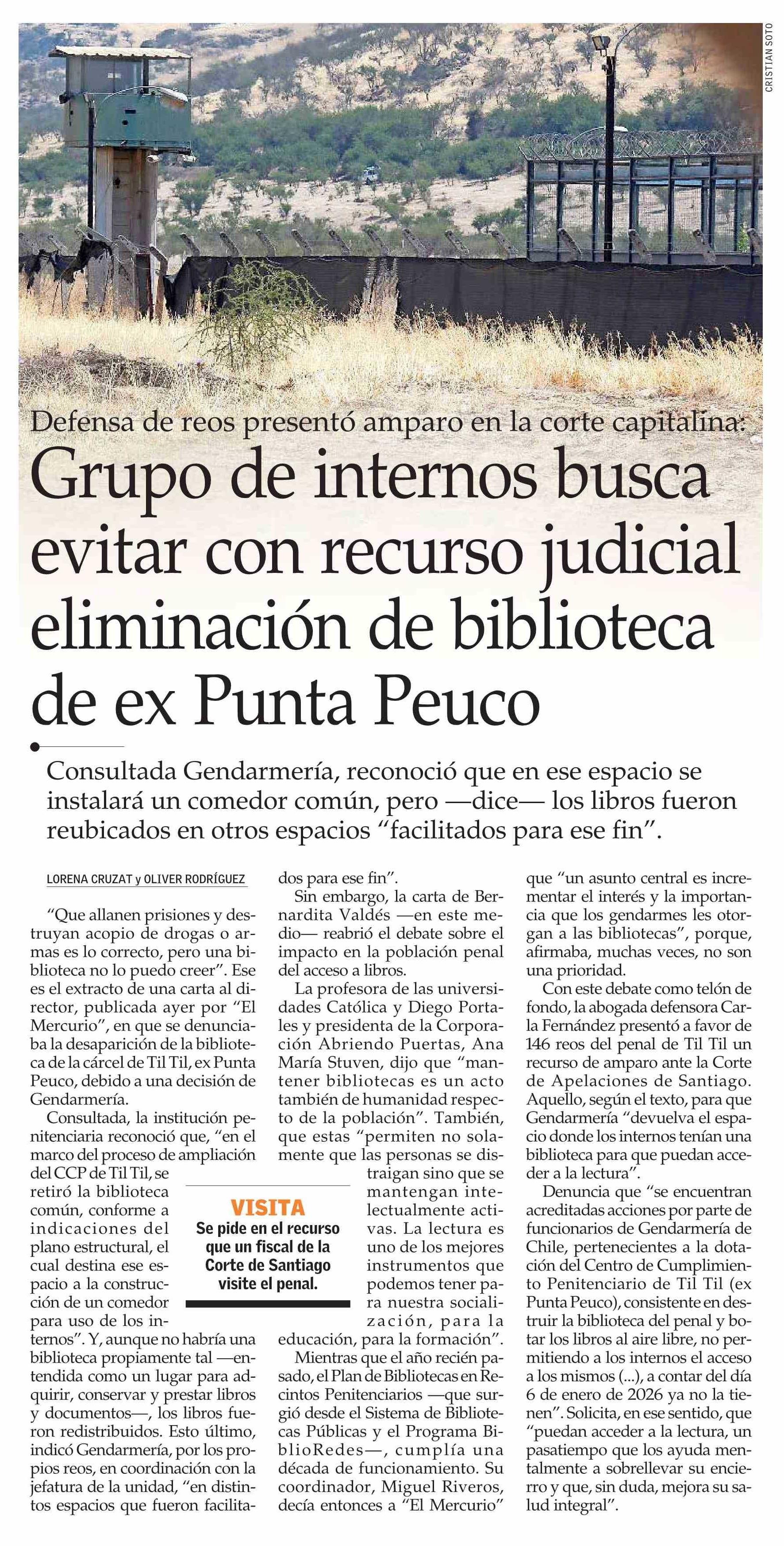 Título: Grupo de internos busca evitar con recurso judicial eliminación de biblioteca de ex Punta Peuco