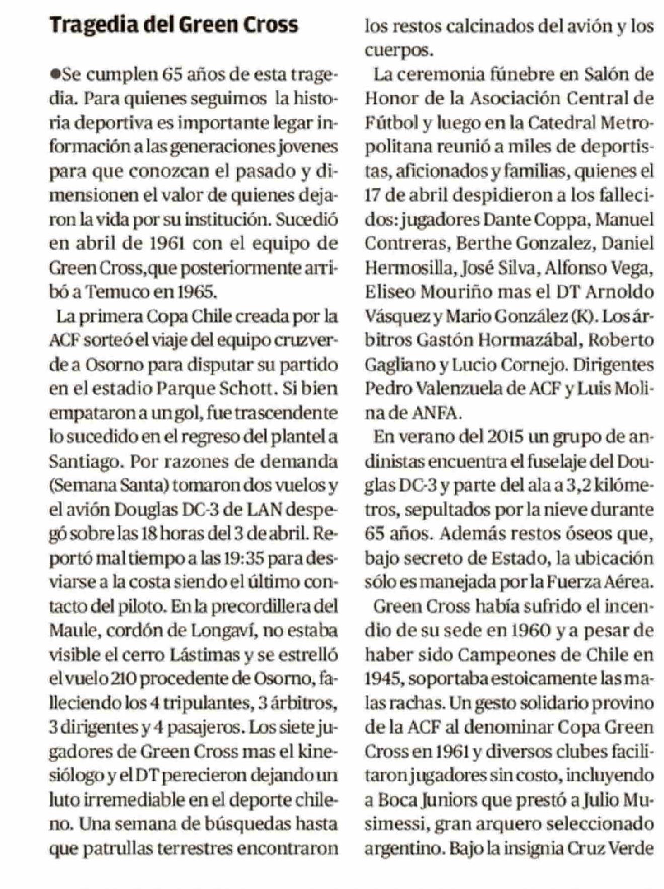 CARTAS: Tragedia del Green Cross 18-04-2026 Crónica de Chillán |
