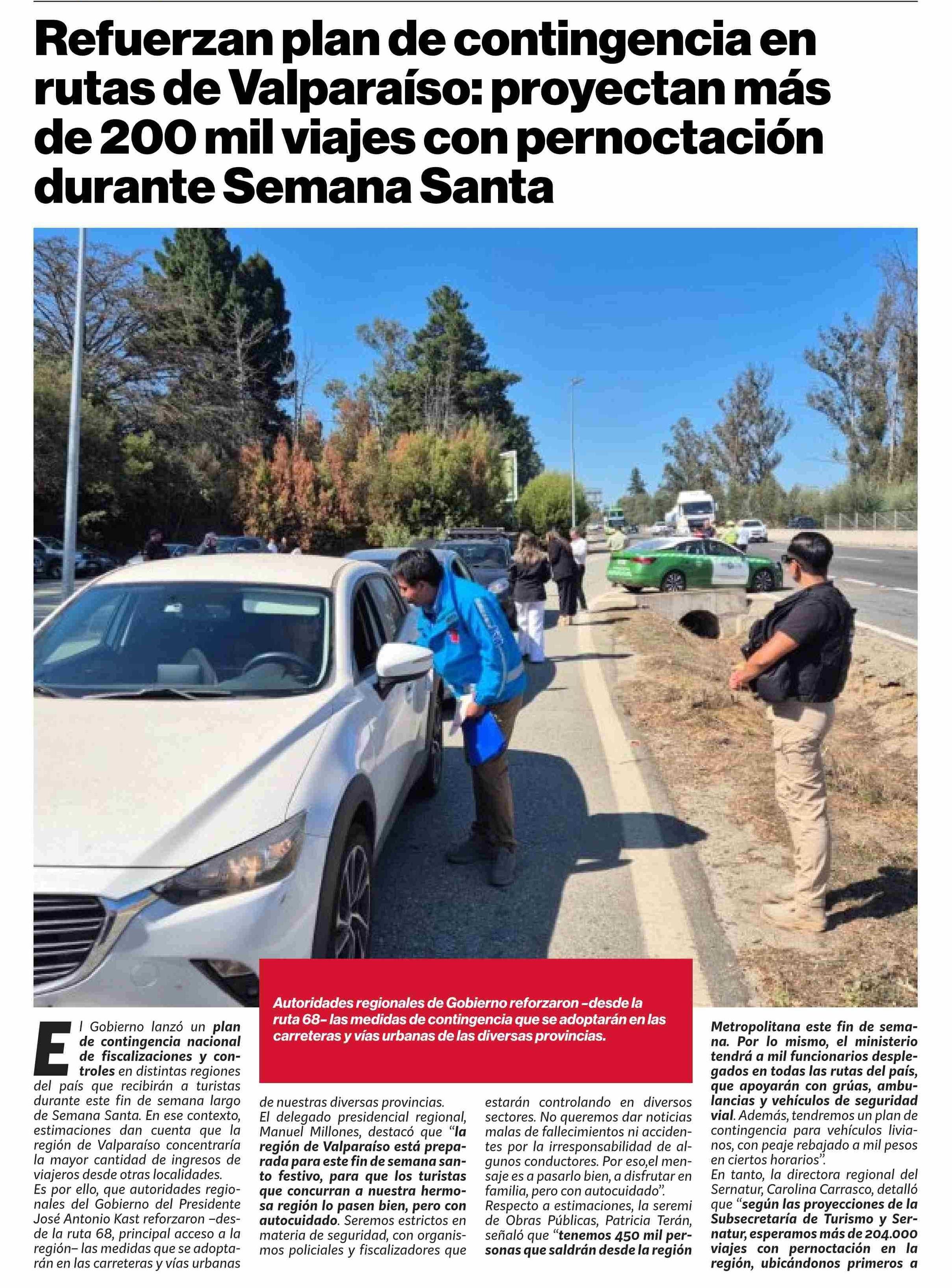 Refuerzan plan de contingencia en rutas de Valparaíso: proyectan más de 200 mil viajes con pernoctación durante Semana Santa 02-04-2026 Puranoticia.cl |