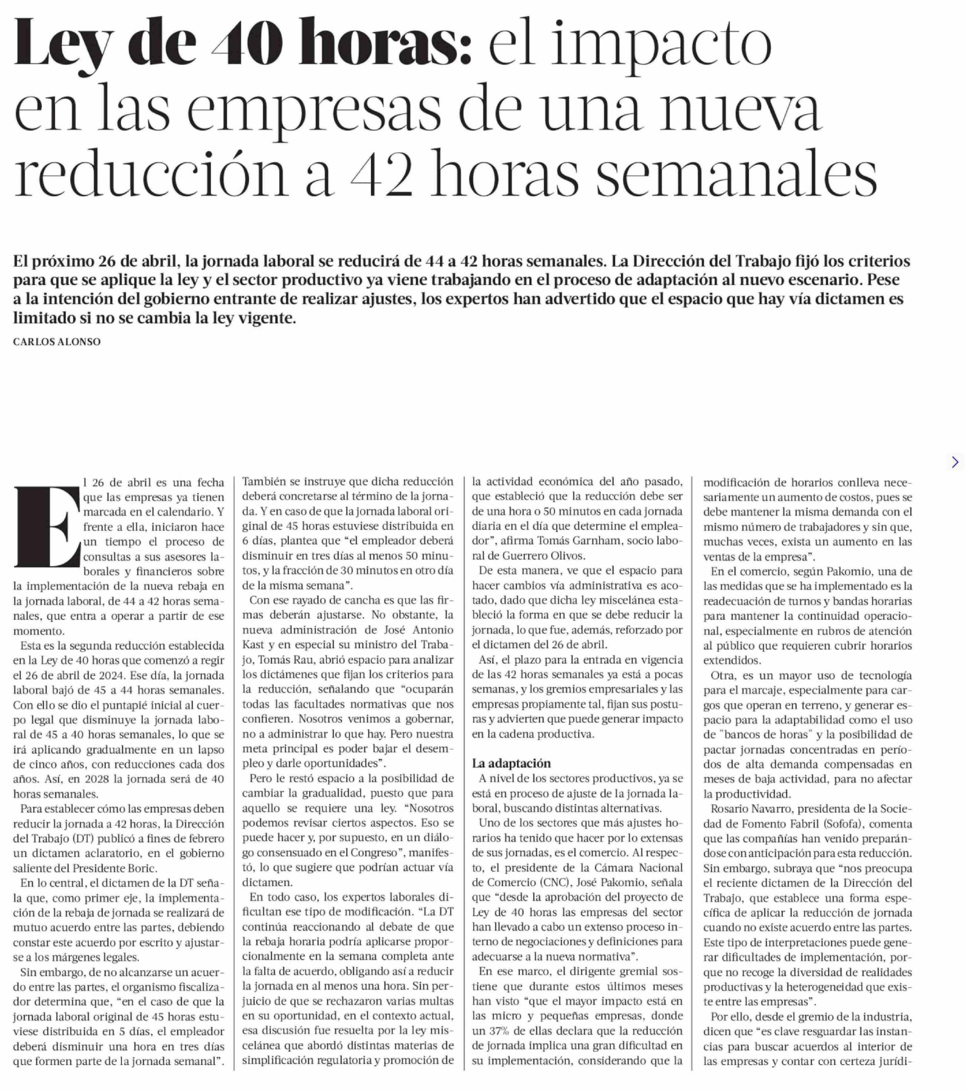 Título: Ley de 40 horas: el impacto en las empresas de una nueva reducción a 42 horas semanales