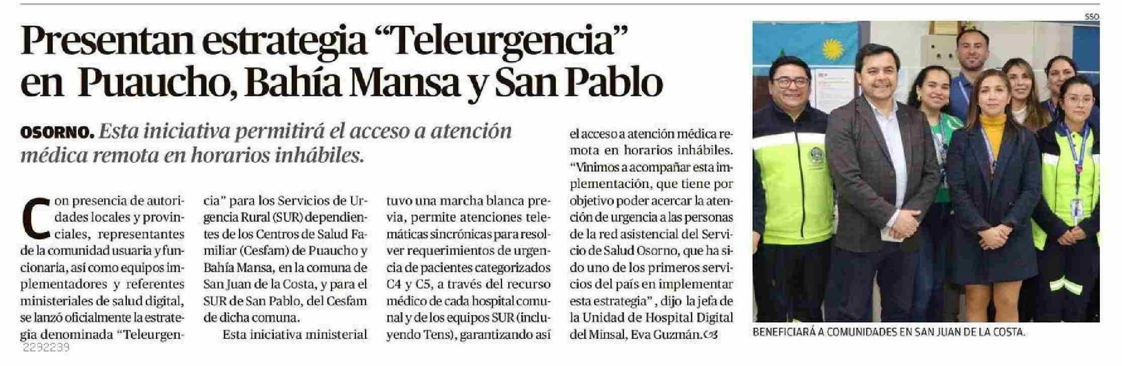 Presentan estrategia "Teleurgencia" en Puaucho, Bahía Mansa y San Pablo 09-06-2025 El Llanquihue |