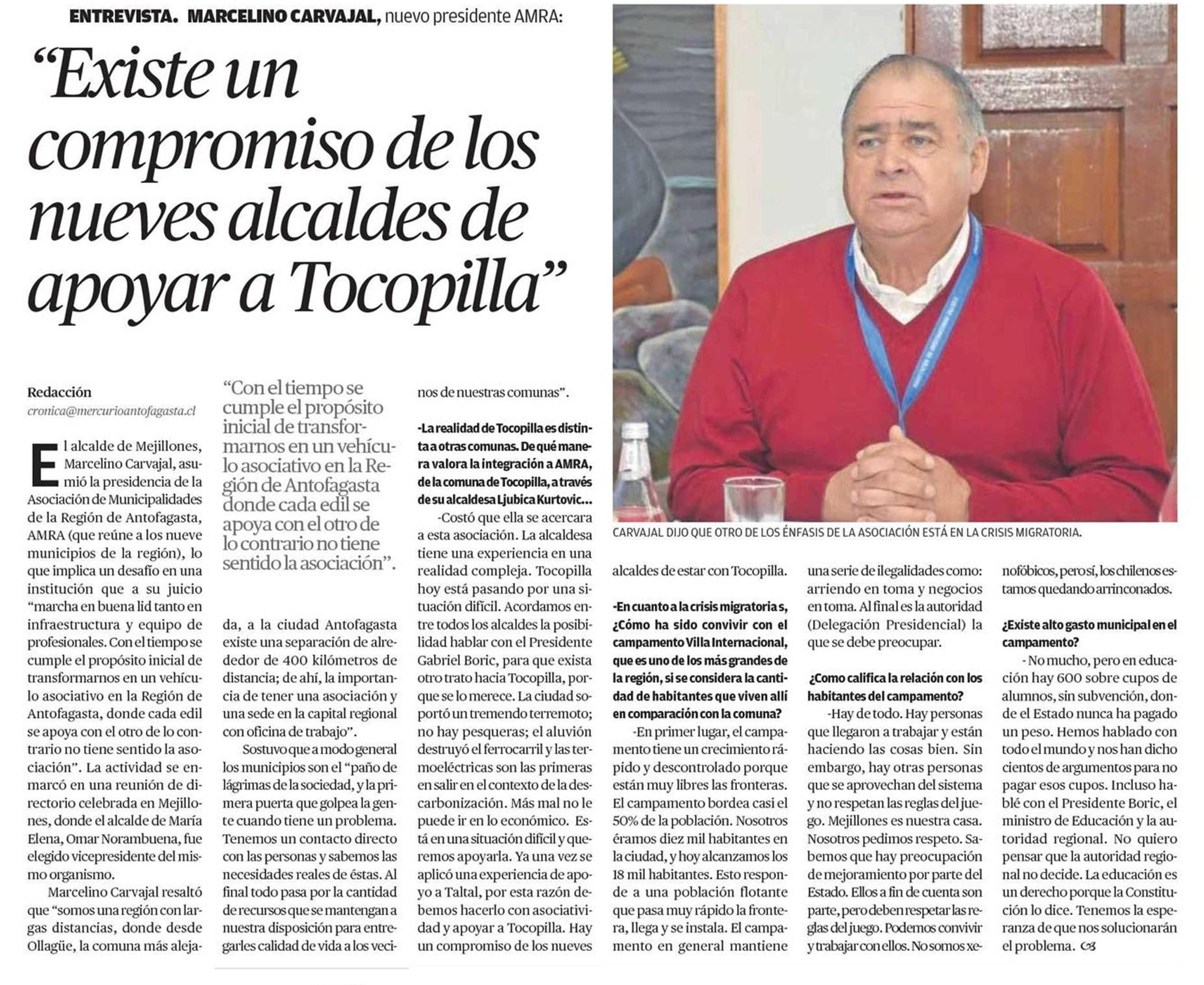 “Existe un compromiso de los nueves alcaldes de apoyar a Tocopilla” 05-03-2023 El Mercurio de Antofagasta |