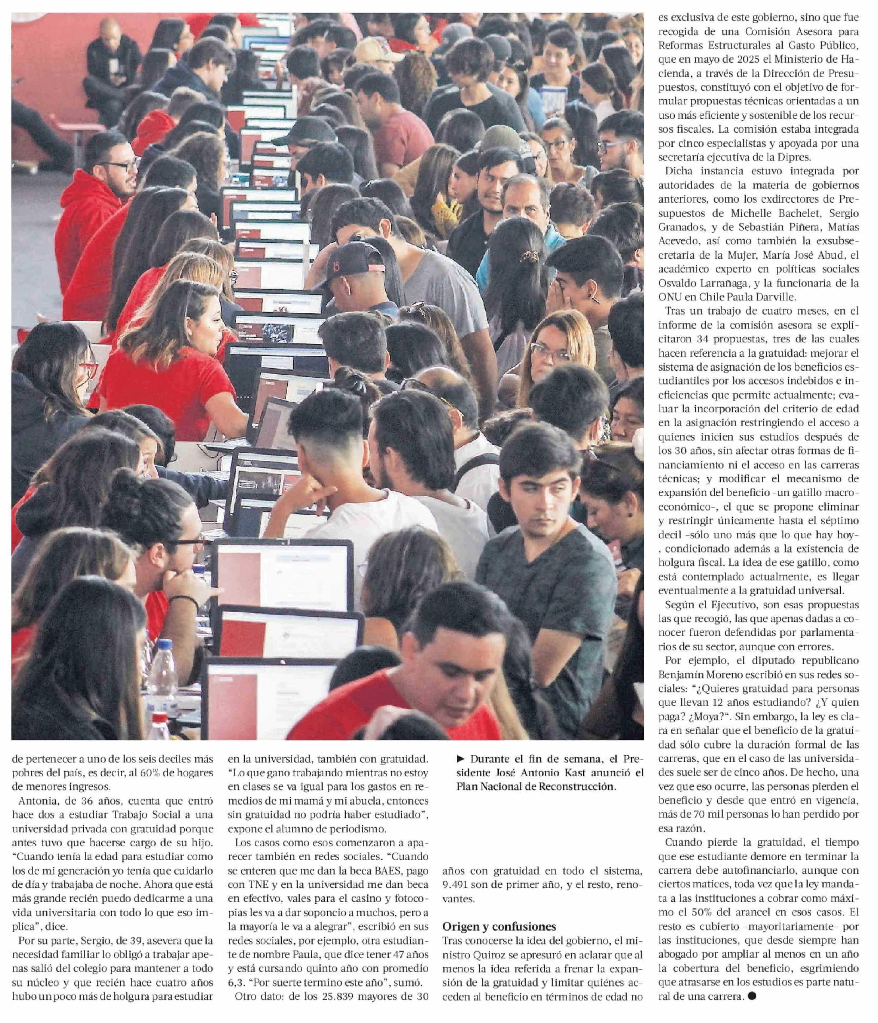 Universitarios sobre los 30 años con gratuidad representan el 1,43% de los estudiantes con el beneficio 17-03-2026 La Tercera |