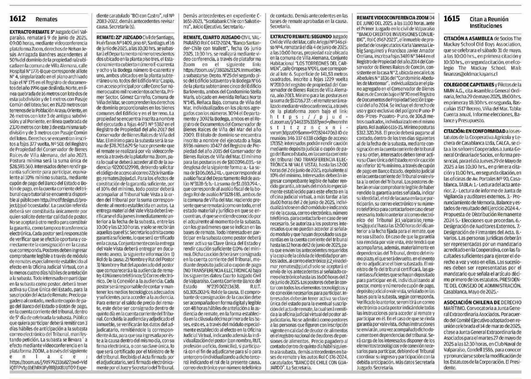 Extractos: CLASIFICADOS 19-05-2025 El Mercurio de Valparaíso |