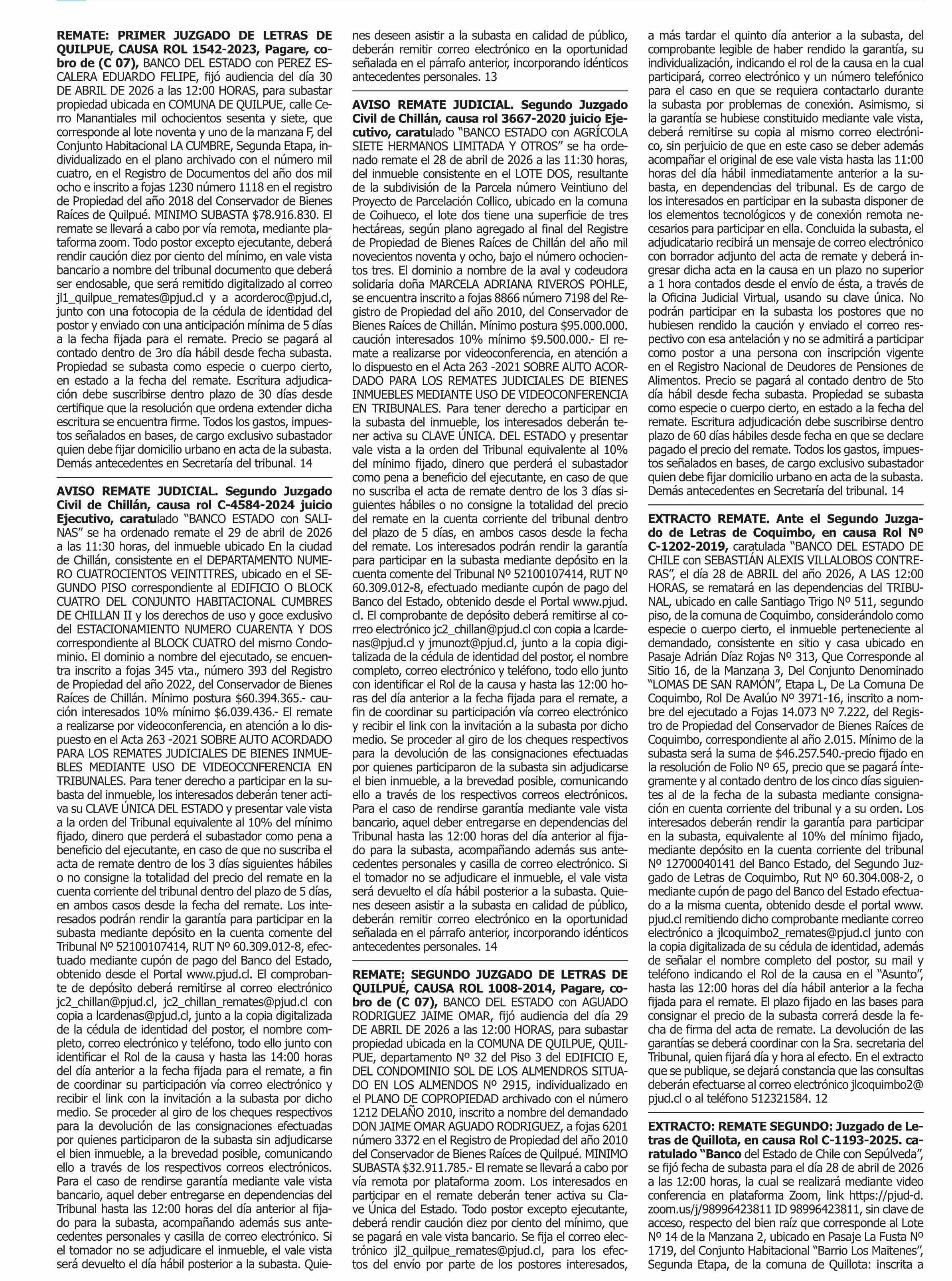 REMATES: 12-04-2026 P&L Públicos y Legales |