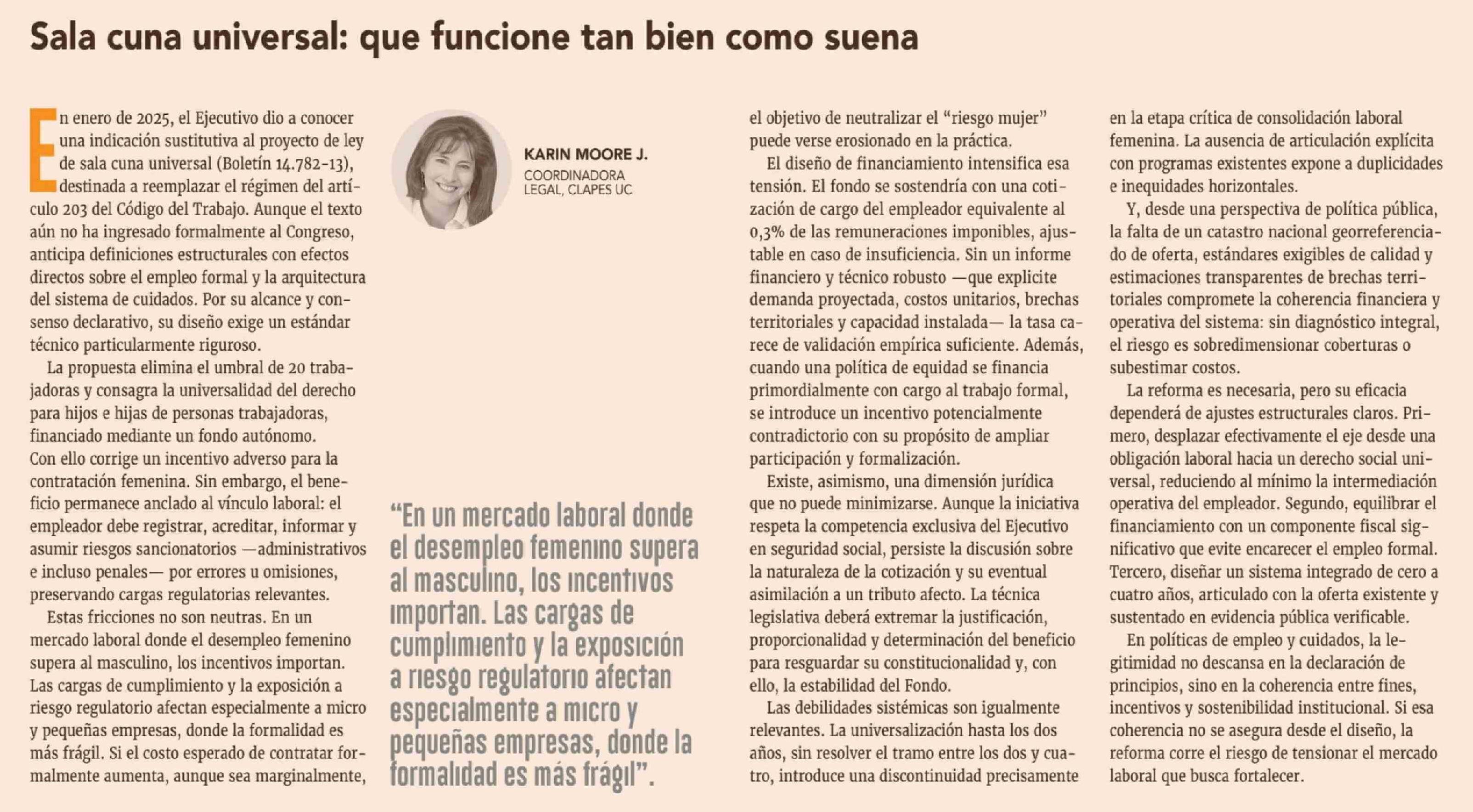 Título: Columnas de Opinión: Sala cuna universal: que funcione tan bien como suena