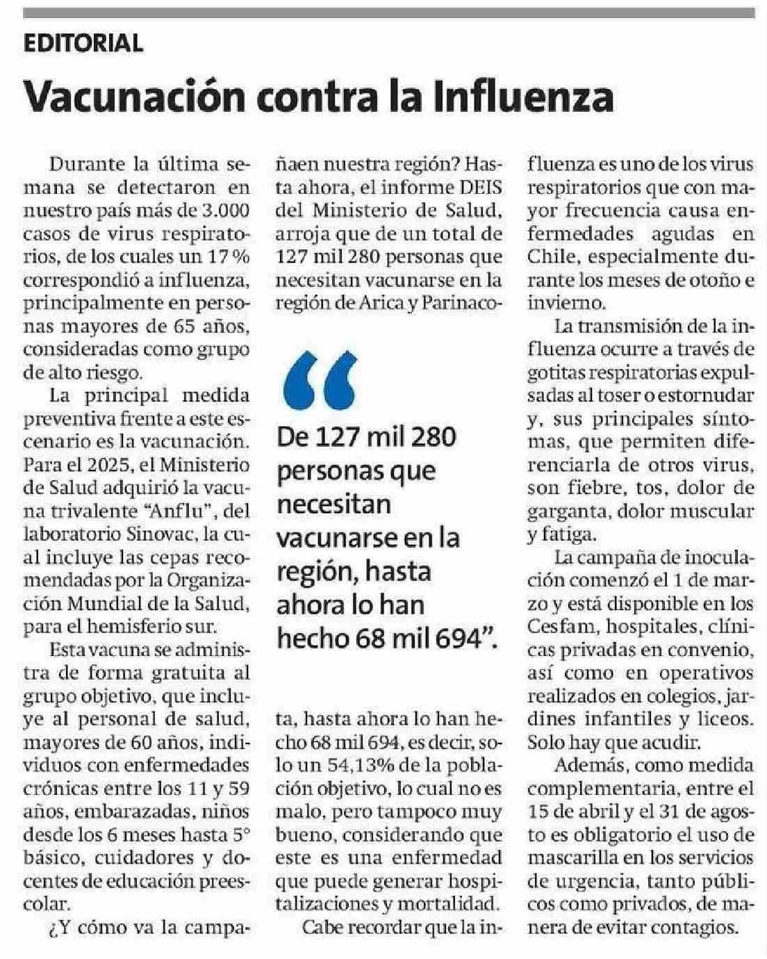 Fecha: 23-05-2025 Sector: Editorial Región: Región de Arica y Parinacota