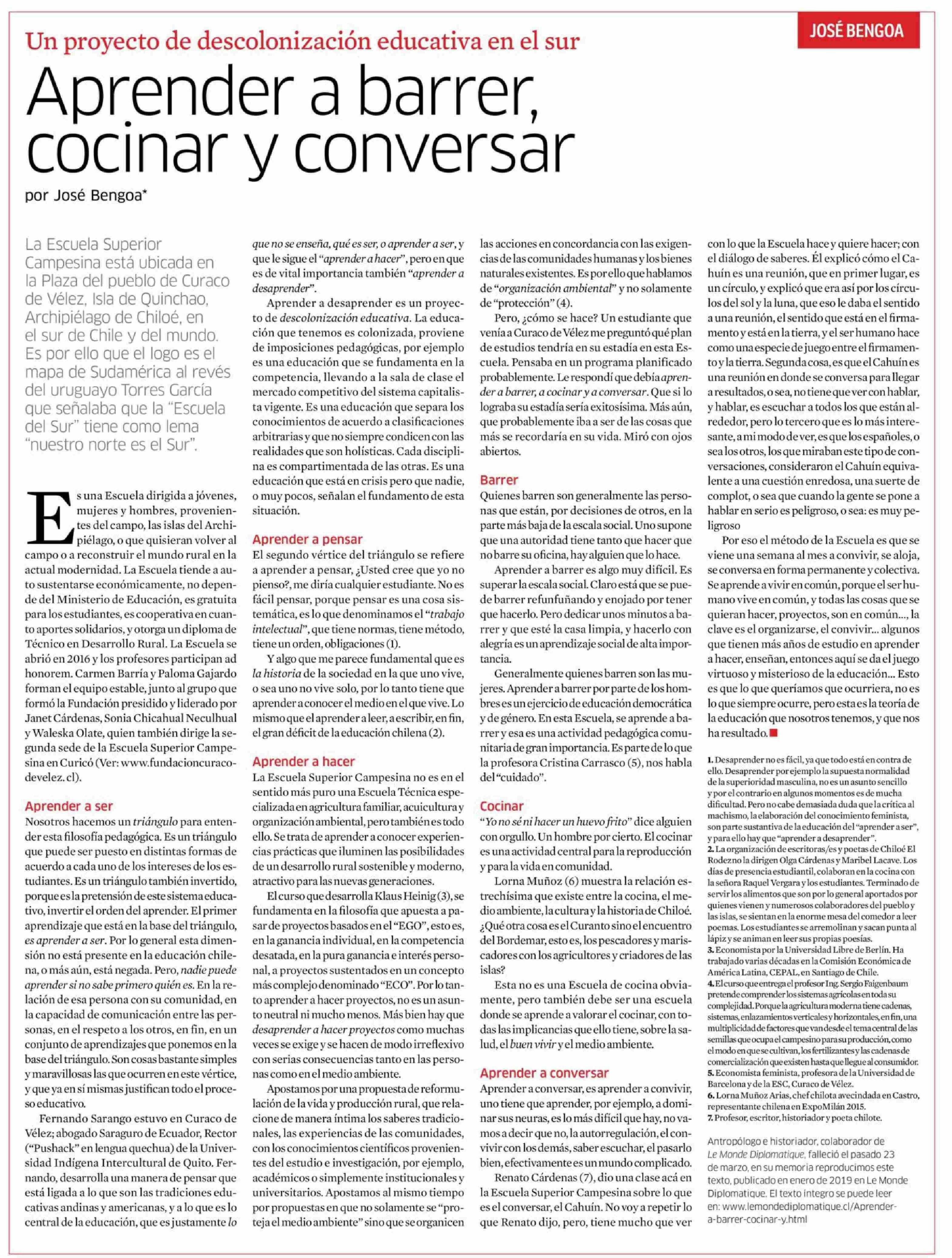 Aprender a barrer, cocinar conversar 07-04-2026 Le Monde Diplomatique |
