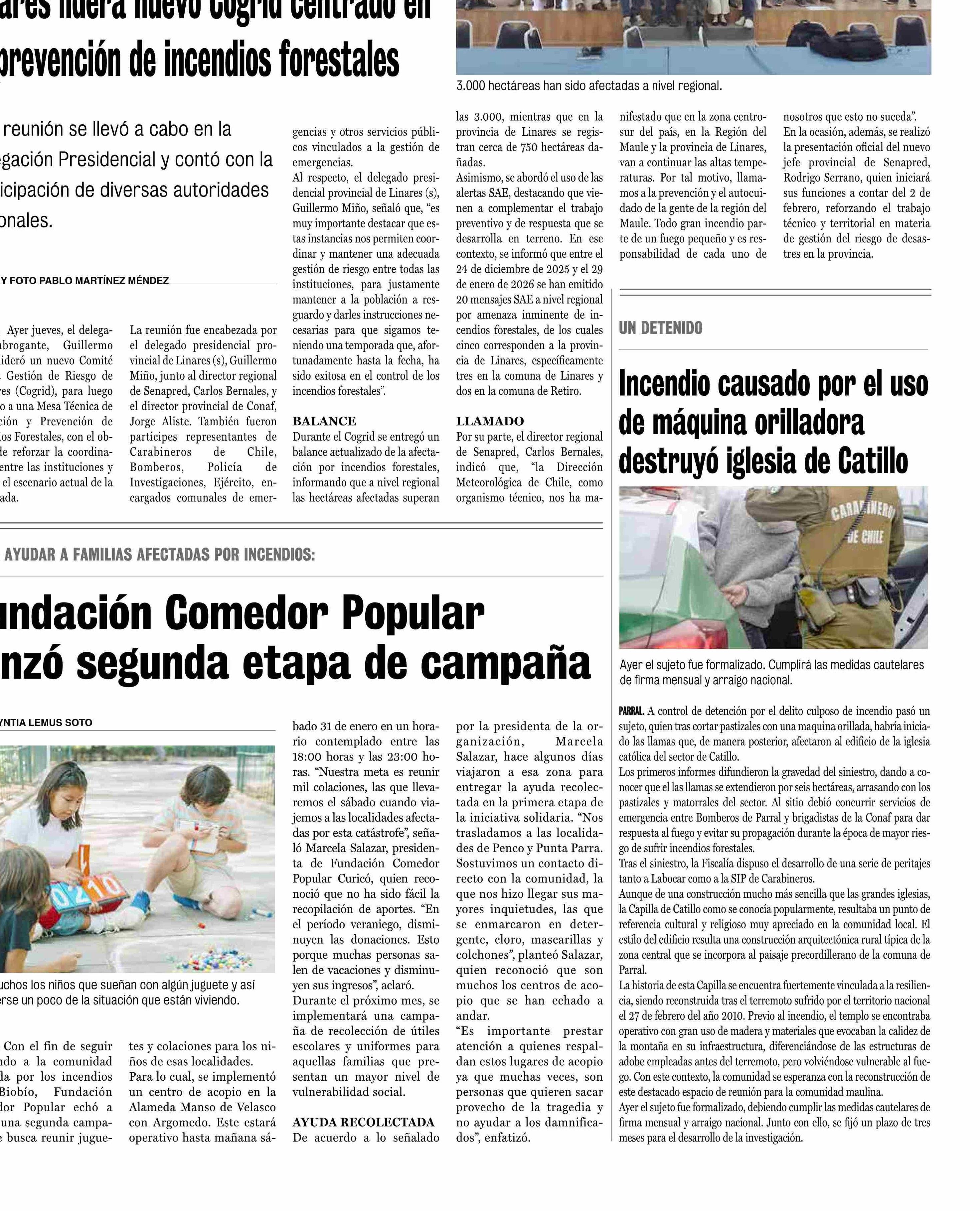 Delegación Presidencial Provincial de Linares lidera nuevo Cogrid centrado en la prevención de incendios forestales 30-01-2026 La Prensa de Curicó |