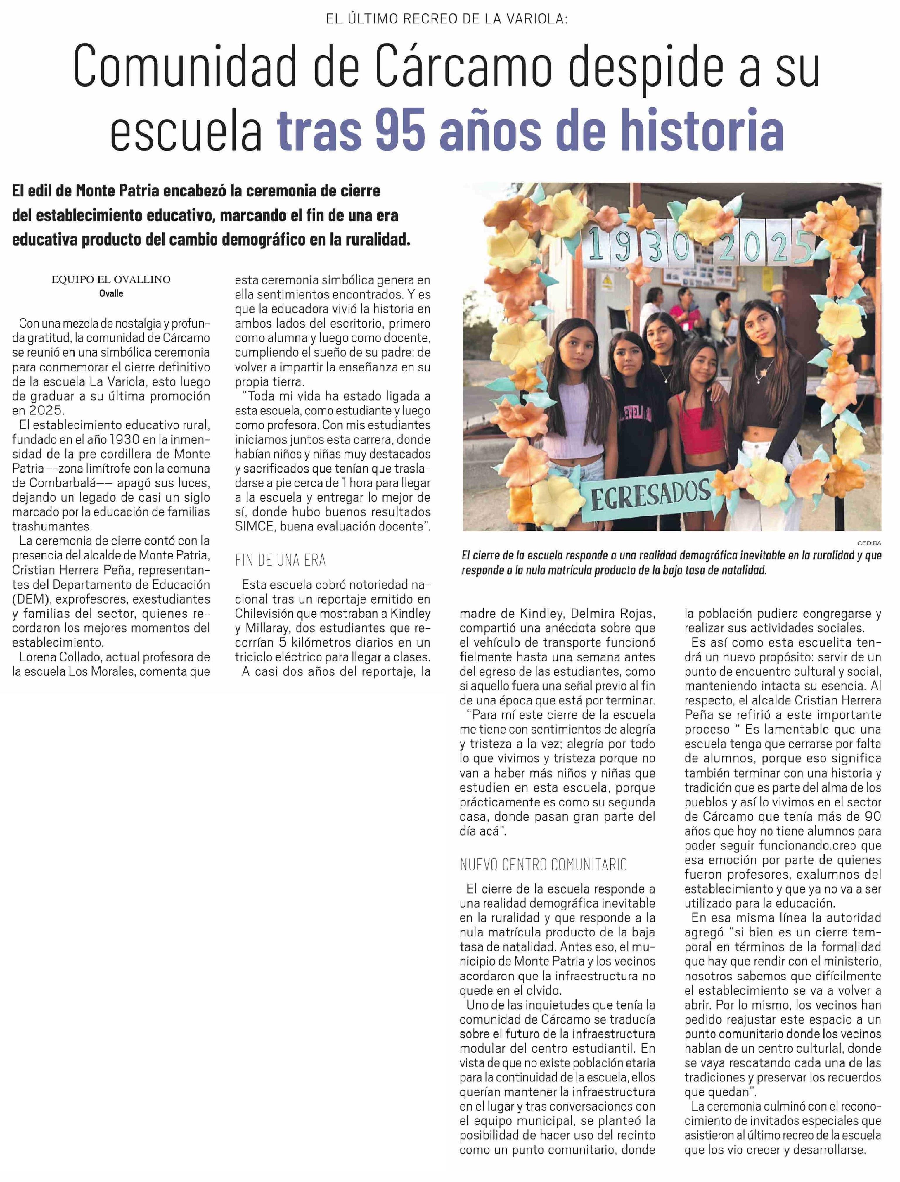 Título: Comunidad de Cárcamo despide a su escuela tras 95 años de historia