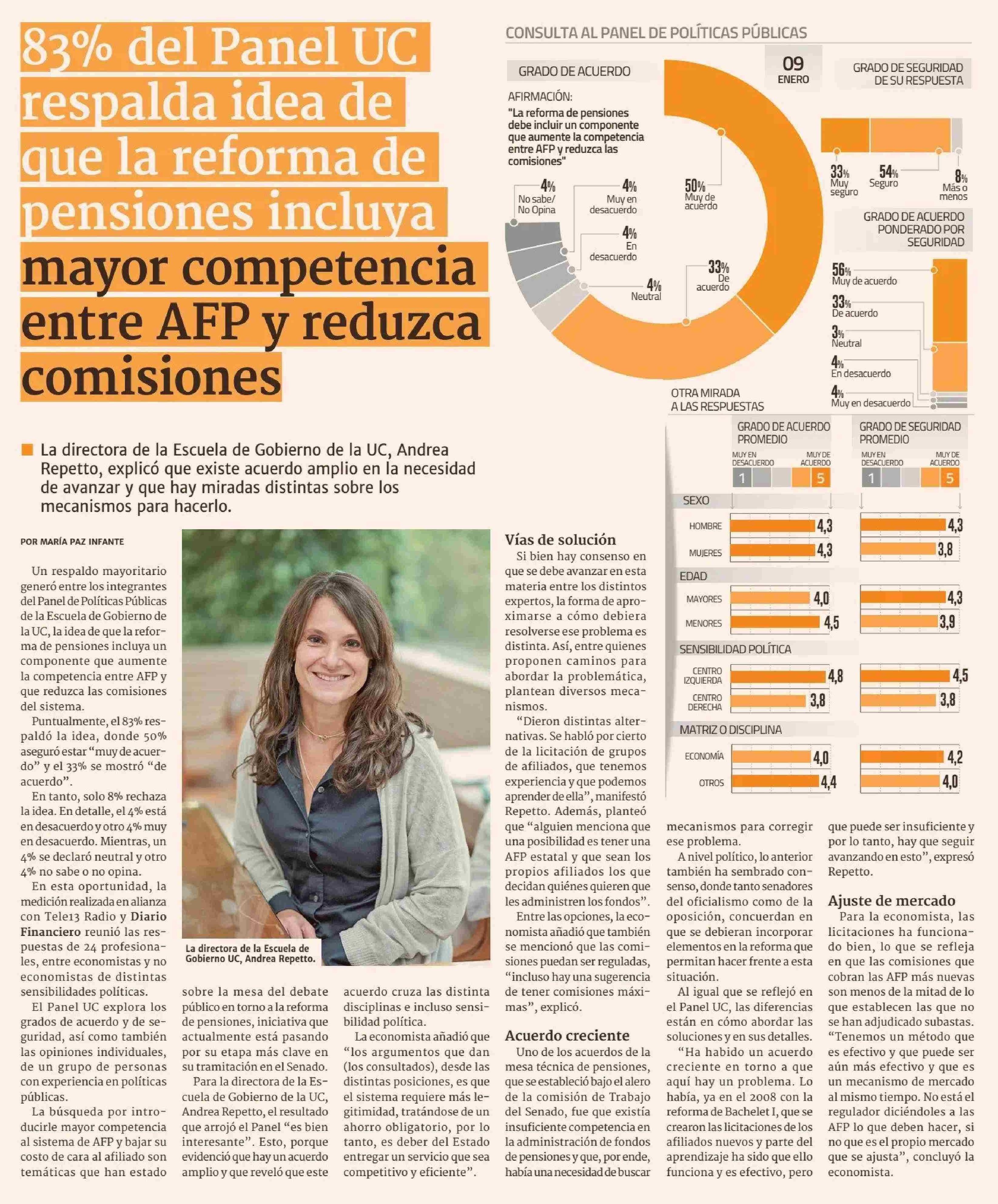 83% del Panel UC respalda idea de que la reforma de pensiones incluya mayor competencia entre AFP y reduzca comisiones 13-01-2025 Diario Financiero |