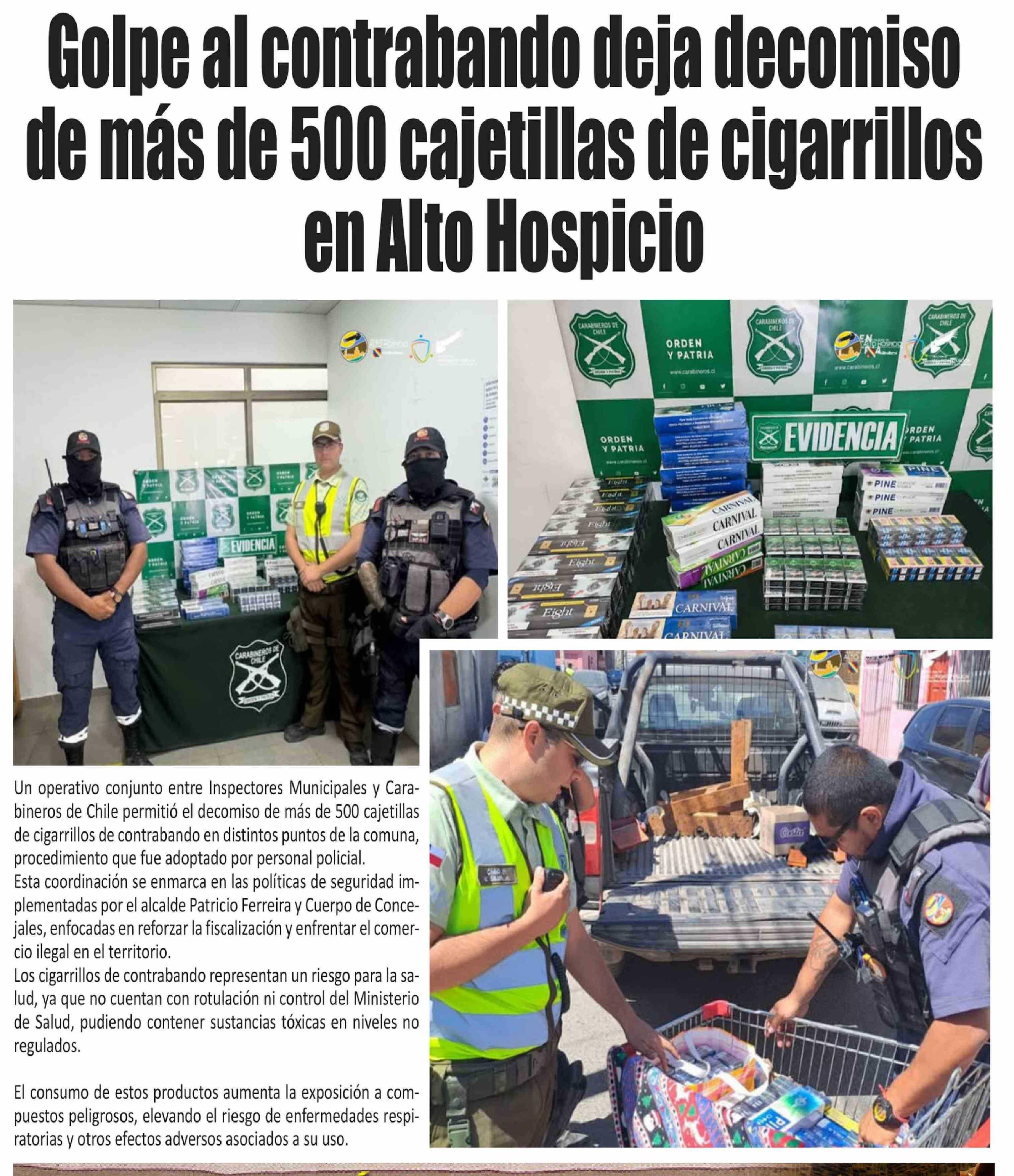 Golpe al contrabando deja decomiso de más de 500 cajetillas de cigarrillos en Alto Hospicio 06-04-2026 El Longino |