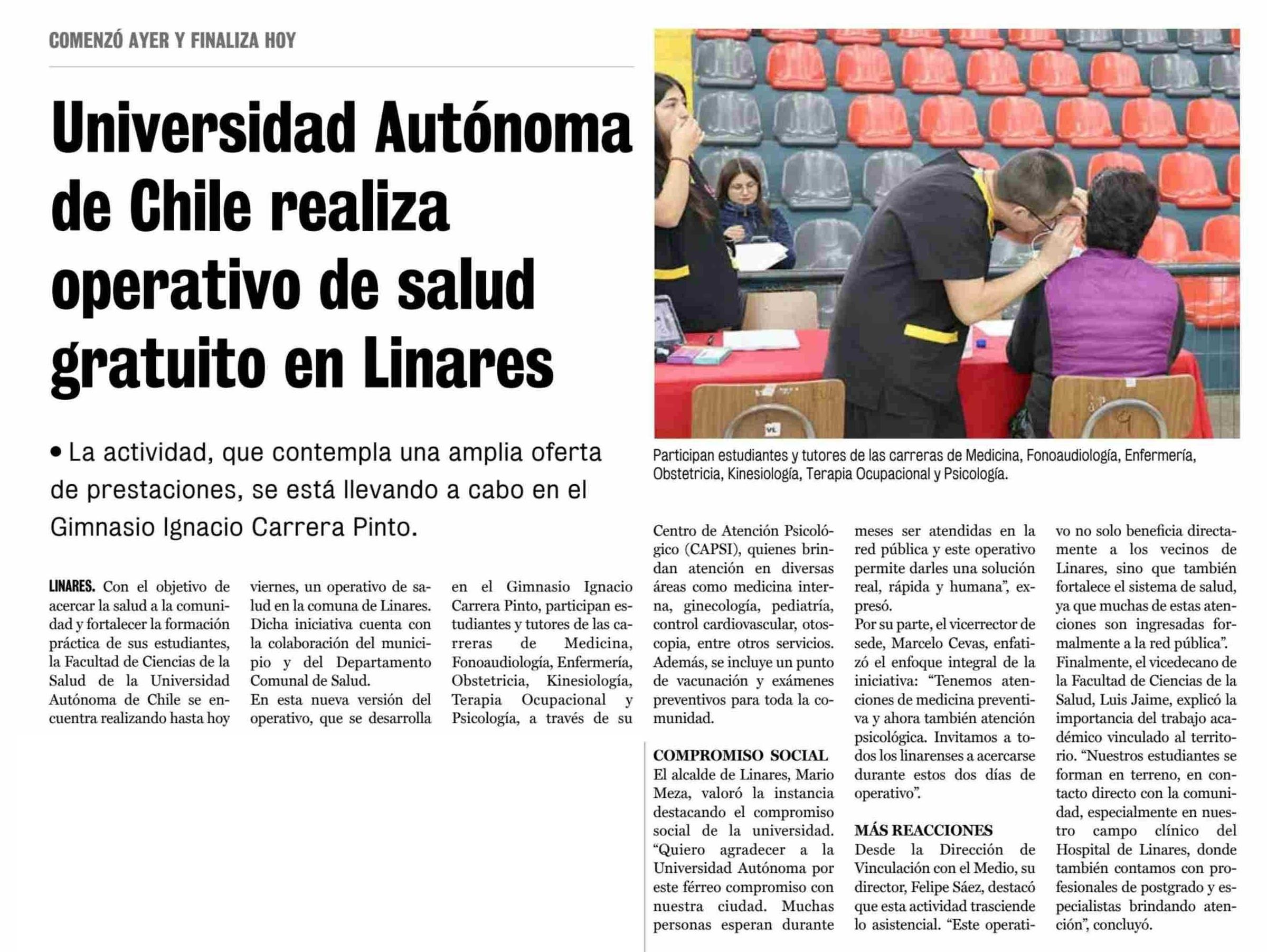 | Título: | Universidad Autónoma de Chile realiza operativo de salud gratuito en Linares |