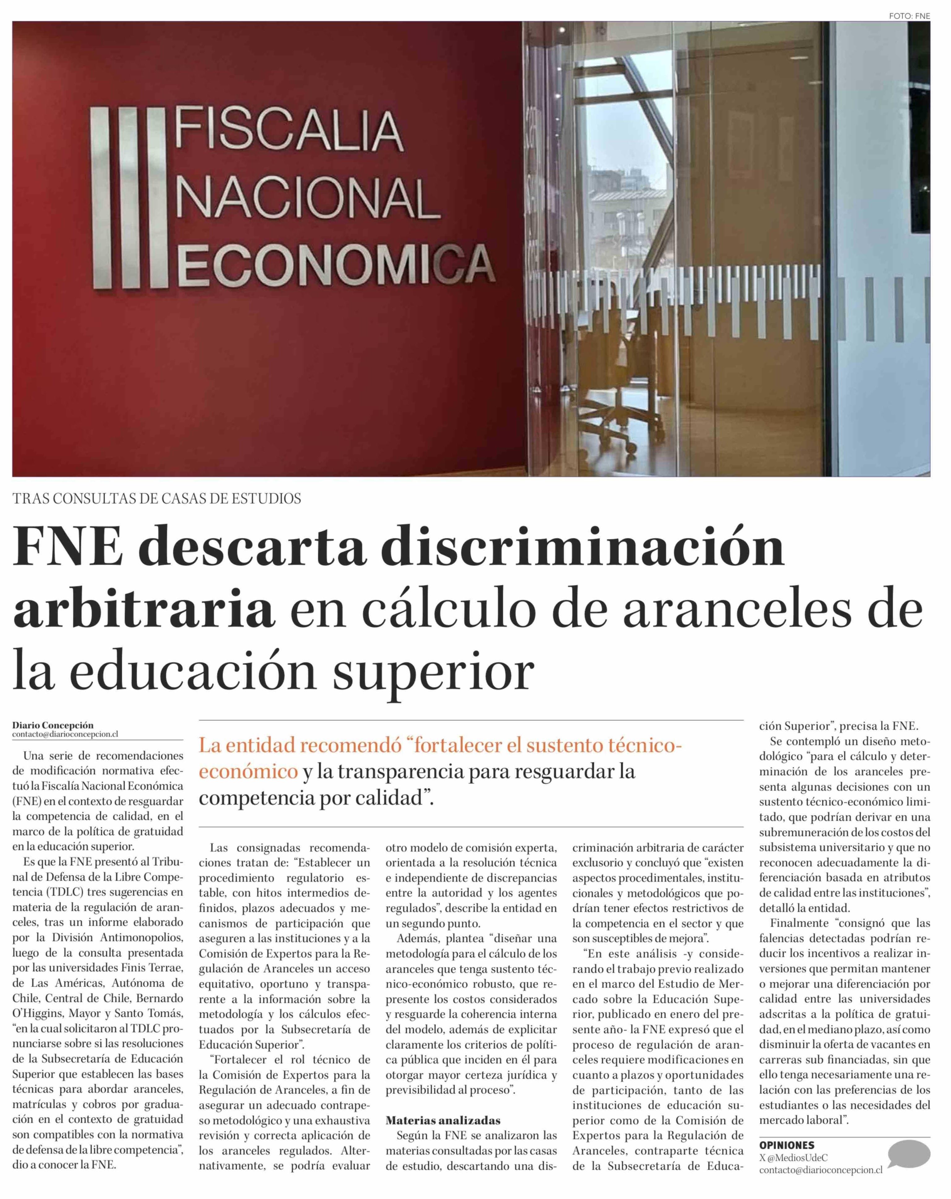 Título: FNE descarta discriminación arbitraria en cálculo de aranceles de la educación superior