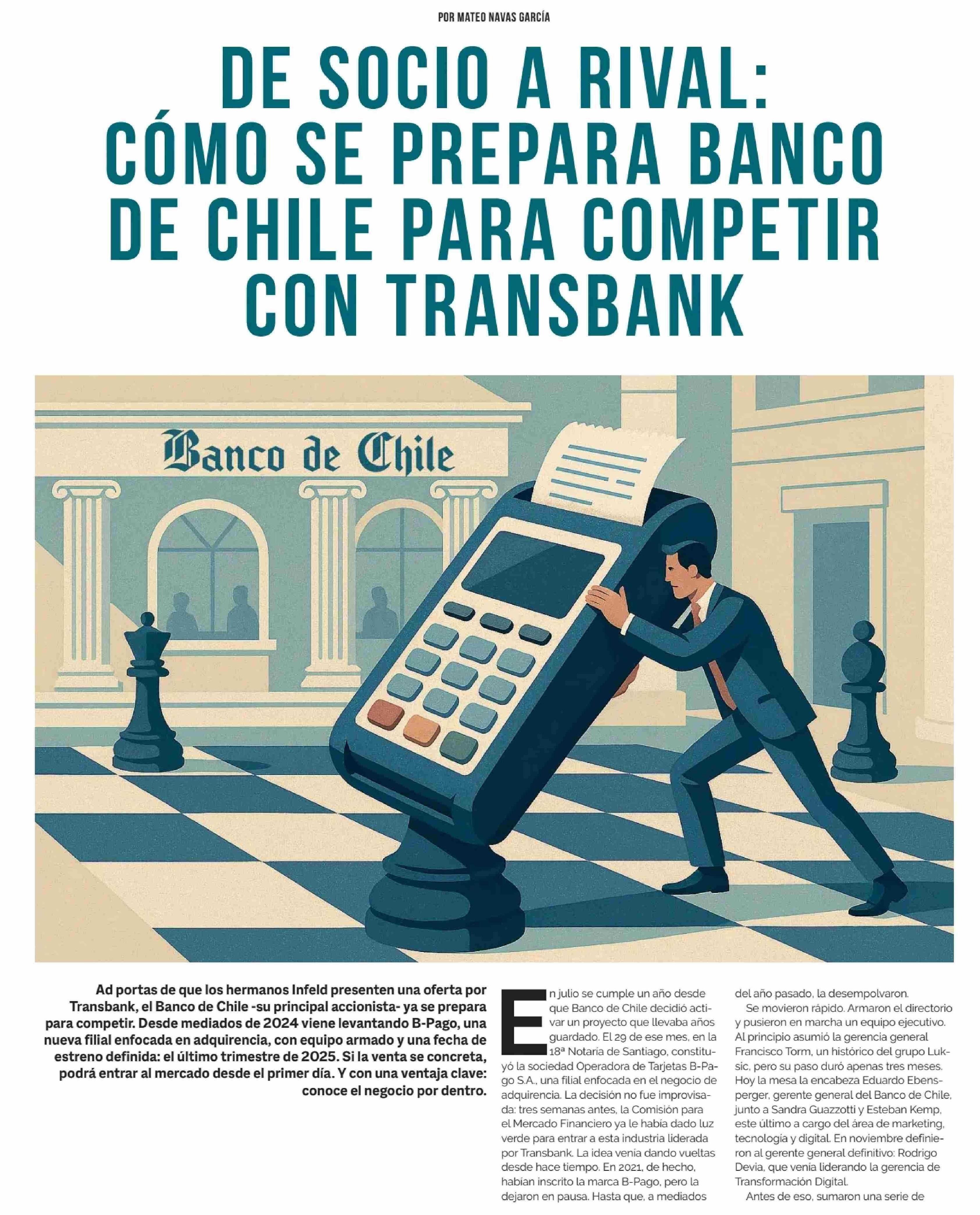 DE SOCIO A RIVAL: COMO SE PREPARA BANCO DE CHILE PARA COMPETIR CON TRANSBANK 15-06-2025 Diario Financiero |