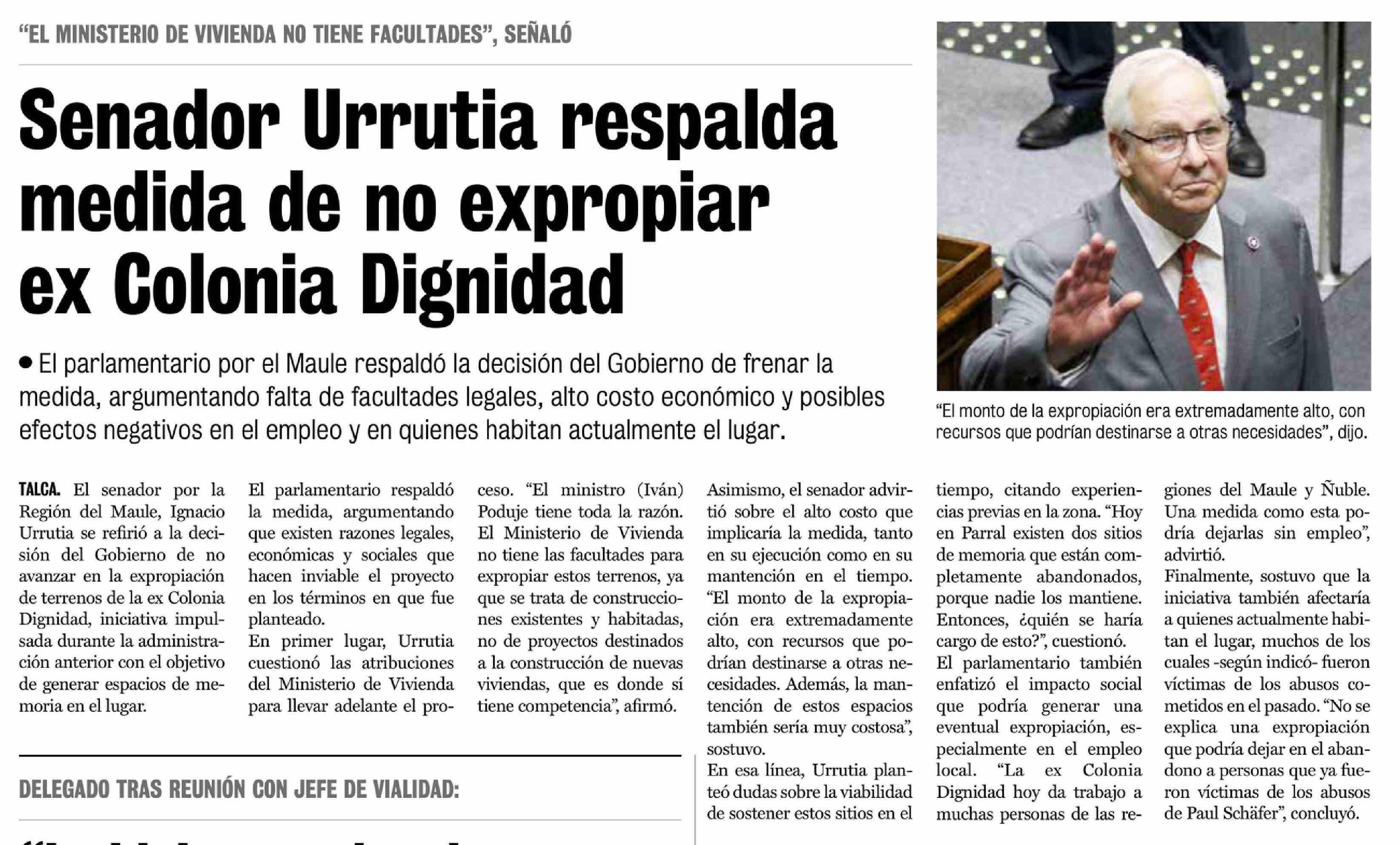 Título: Senador Urrutia respalda medida de no expropiar ex Colonia Dignidad