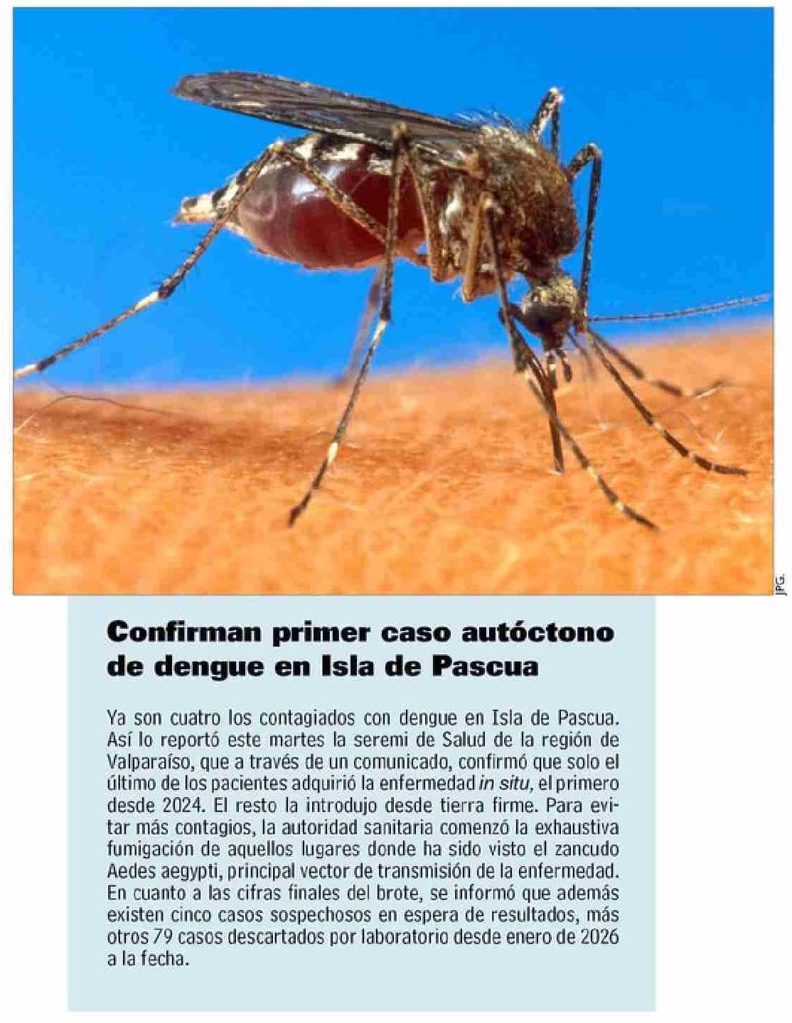 Confirman primer caso autócton: de dengue en Isla de Pascua 04-03-2026 Las Últimas Noticias |