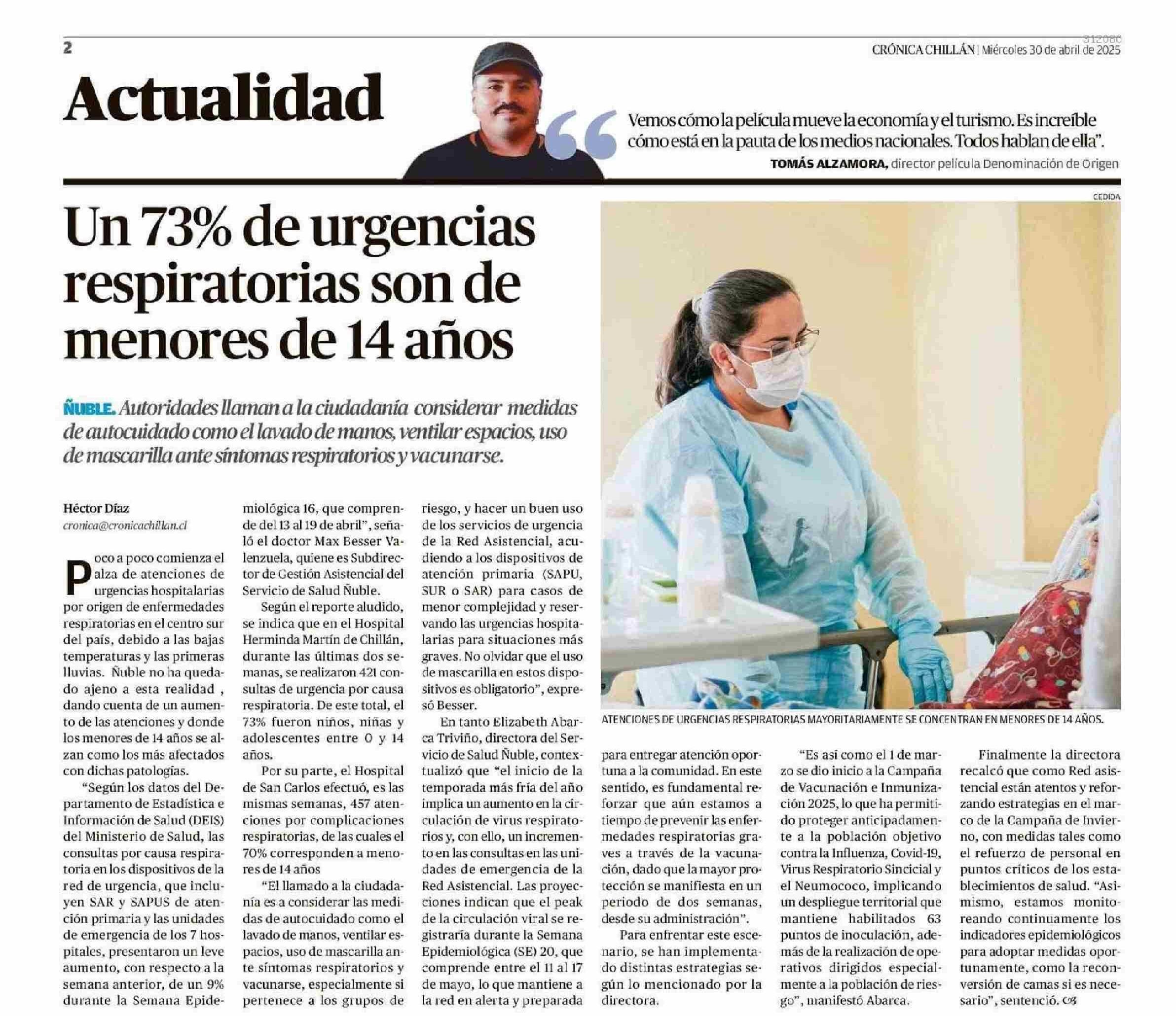 Actualidad Actualidad respiratorias son de menores de 14 años 30-04-2025 Crónica de Chillán |