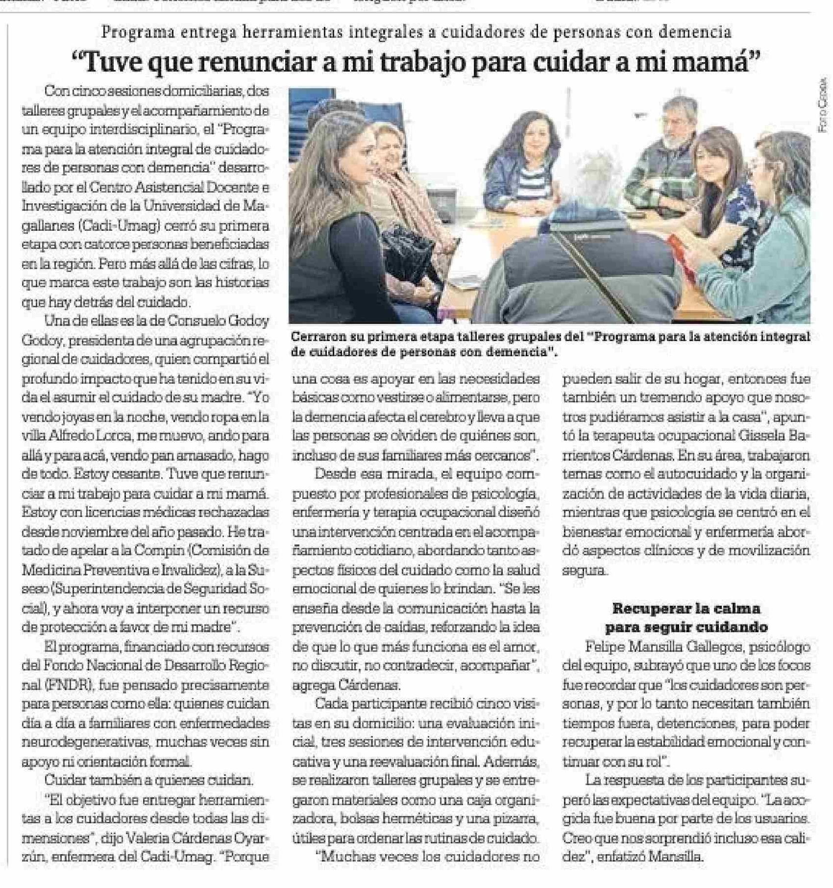 "Tuve que renunciar a mi trabajo para cuidar a mi mamá" 18-06-2025 La Prensa Austral |