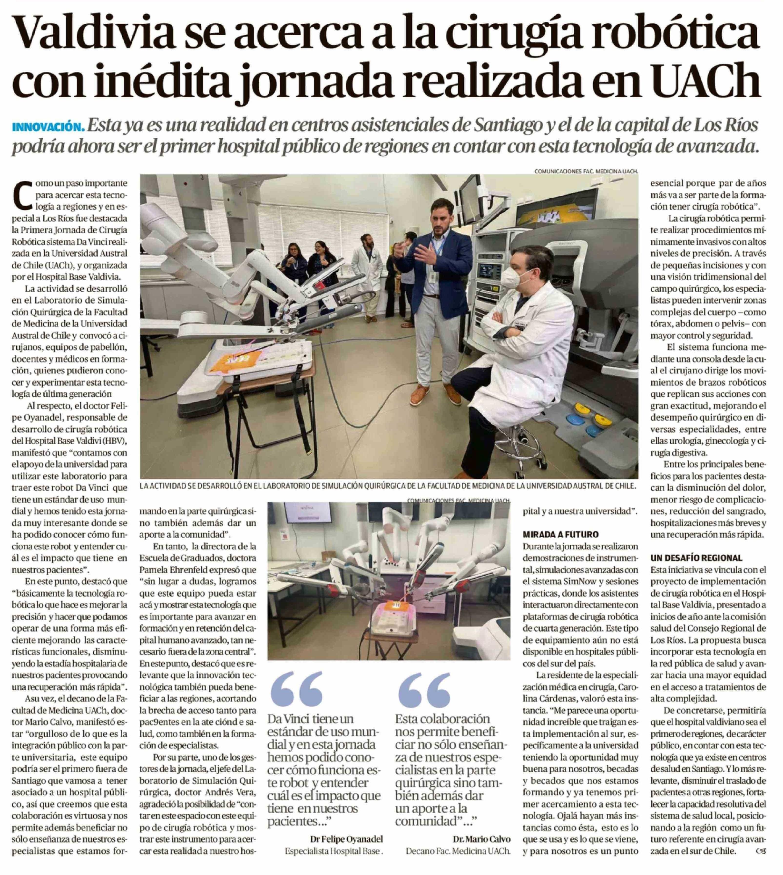 Valdivia se acerca a la cirugía robótica con inédita jornada realizada en UACh 24-04-2026 Diario Austral Región de Los Ríos |