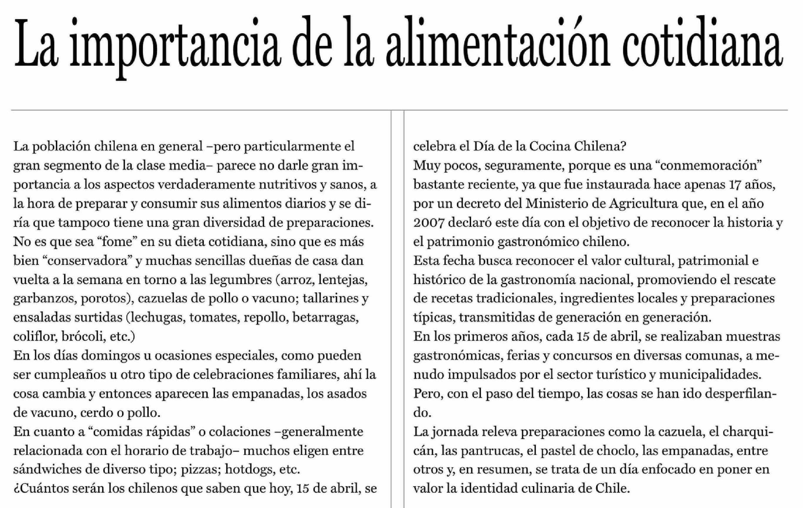 Editorial: La importancia de la alimentación cotidiana 15-04-2026 La Prensa de Curicó |