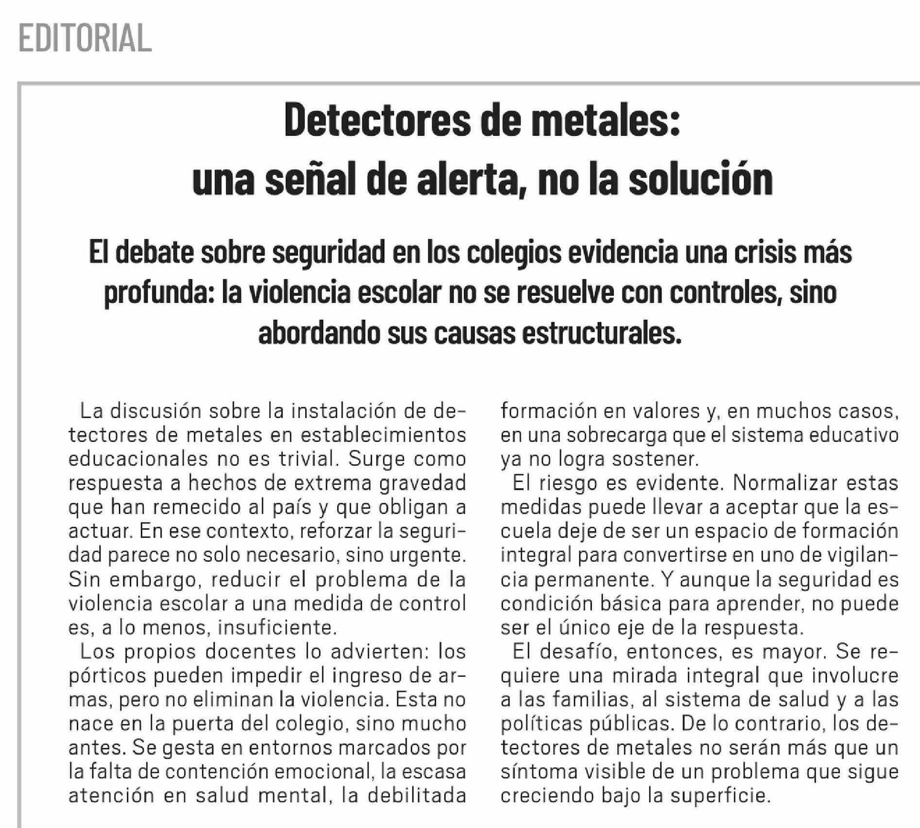 Editorial: Detectores de metales: una señal de alerta, no la solución