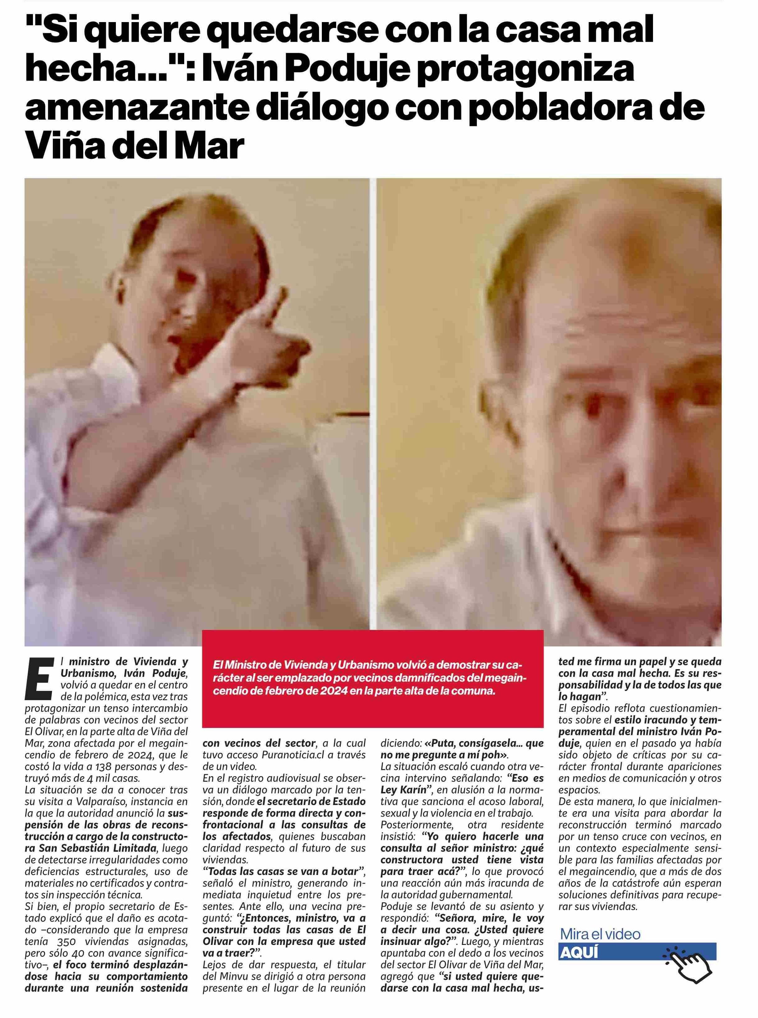 "Si quiere quedarse con la casa mal hecha...”: Iván Poduje protagoniza amenazante diálogo con pobladora de Viña del Mar 25-03-2026 Puranoticia.cl |