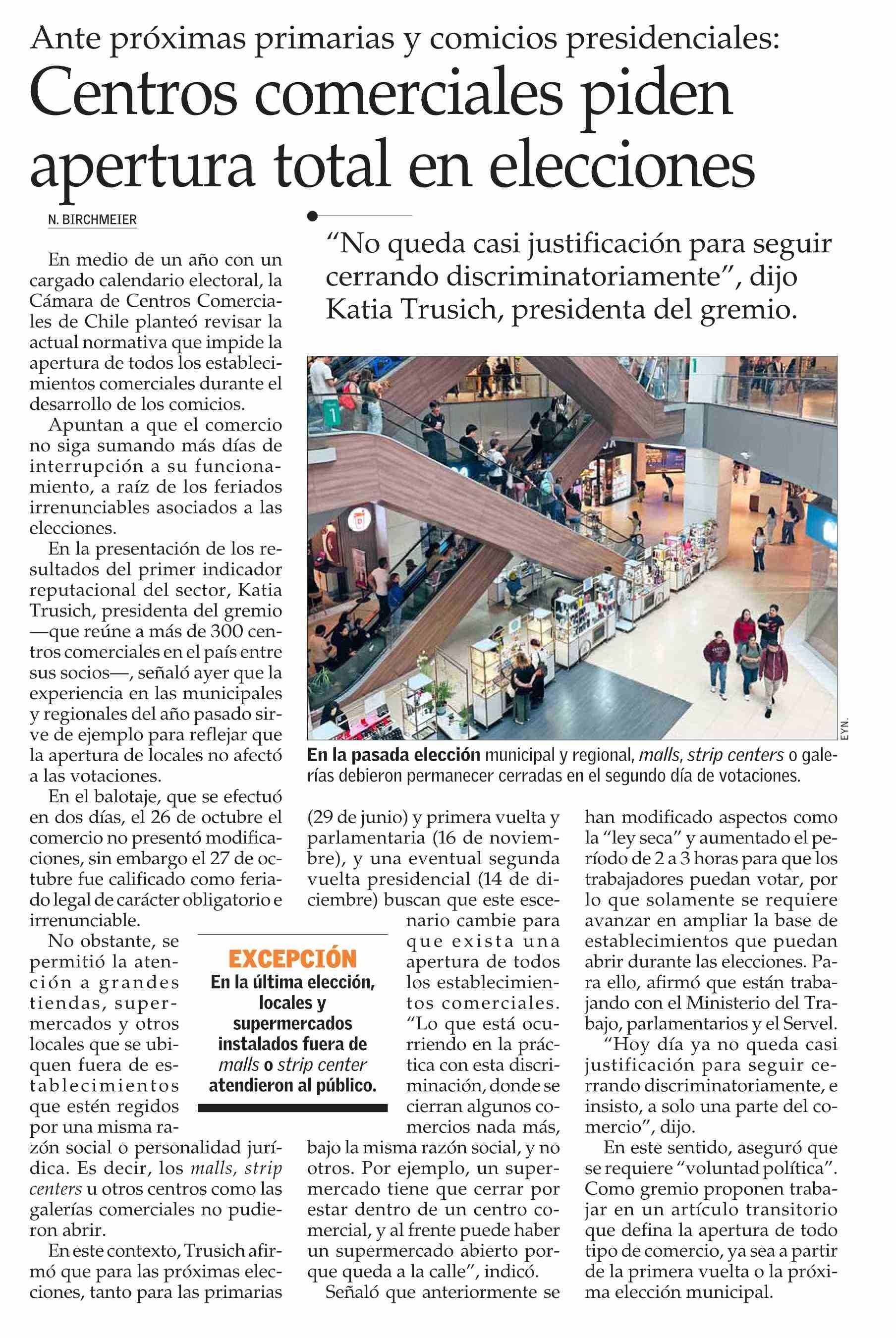 Centros comerciales piden apertura total en elecciones 30-05-2025 El Mercurio |